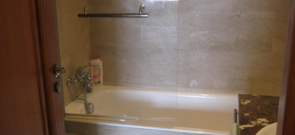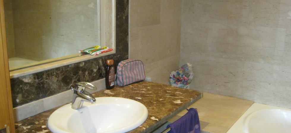 Three bedrooms with wardrobe, three bathrooms with toilets, two with bath and one with shower, living room with 5 m² balcony and an equipped kitchen with 5 m² balcony