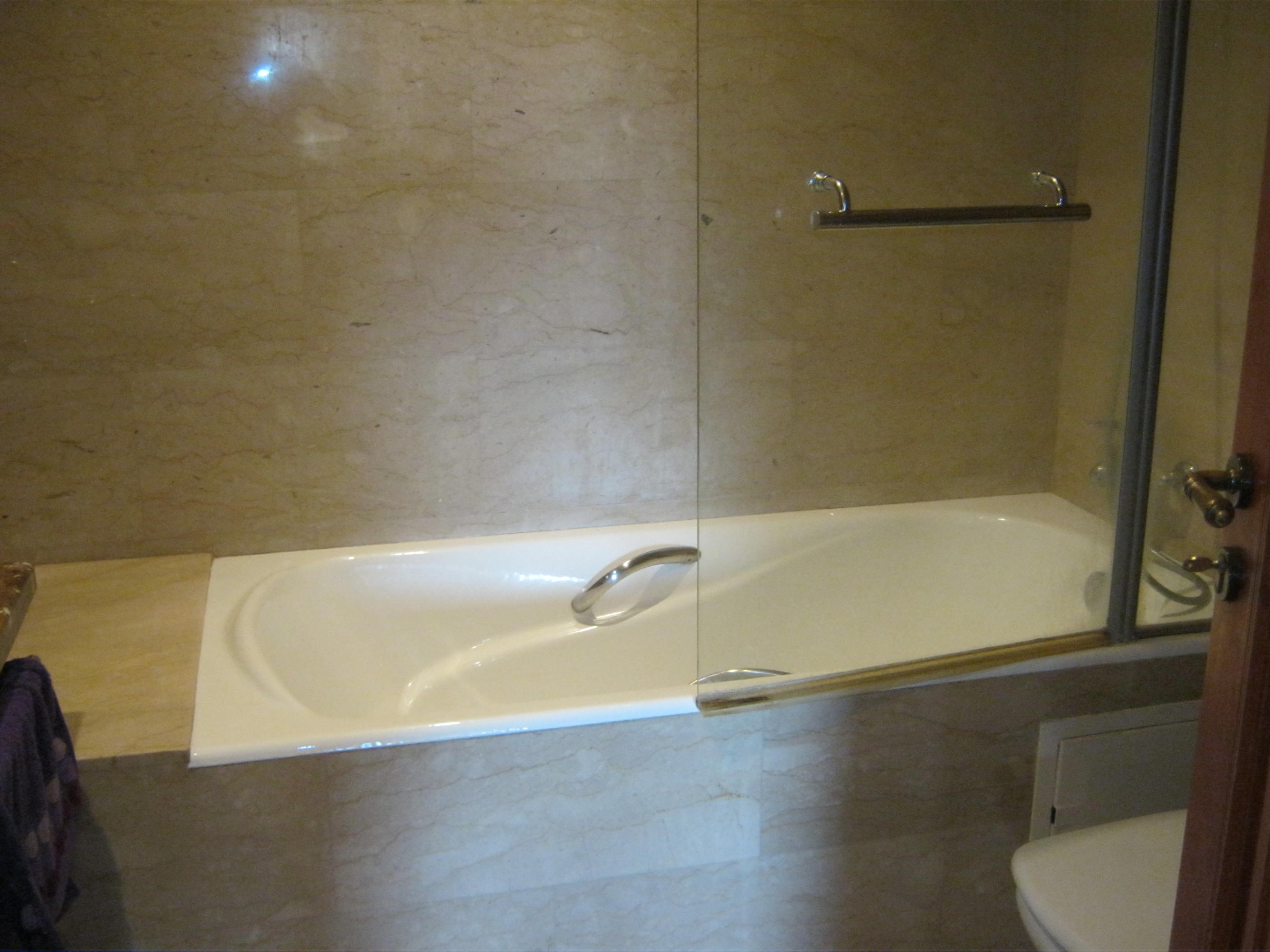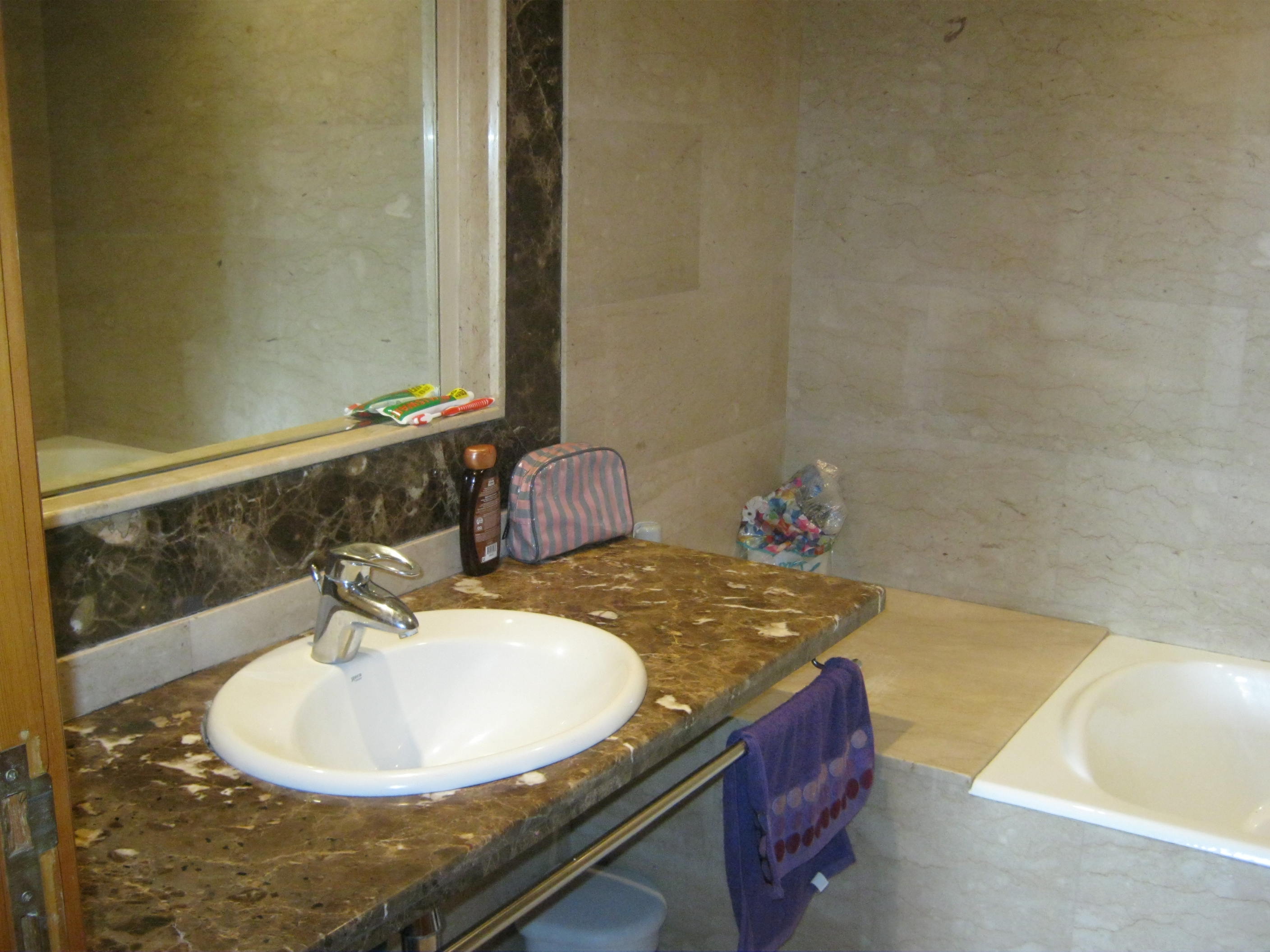 Three bedrooms with wardrobe, three bathrooms with toilets, two with bath and one with shower, living room with 5 m² balcony and an equipped kitchen with 5 m² balcony