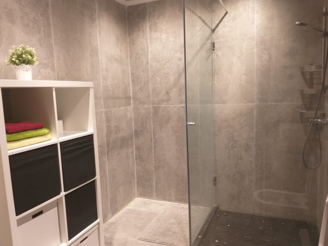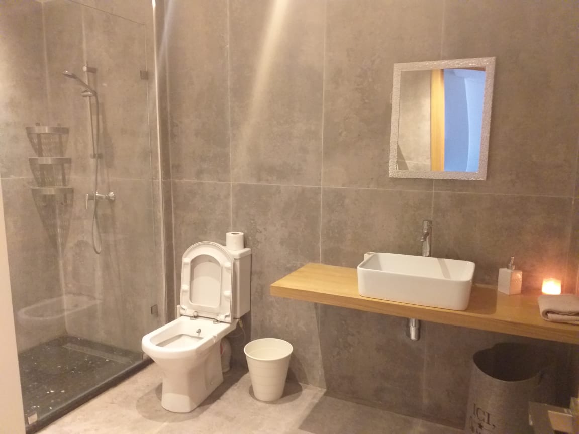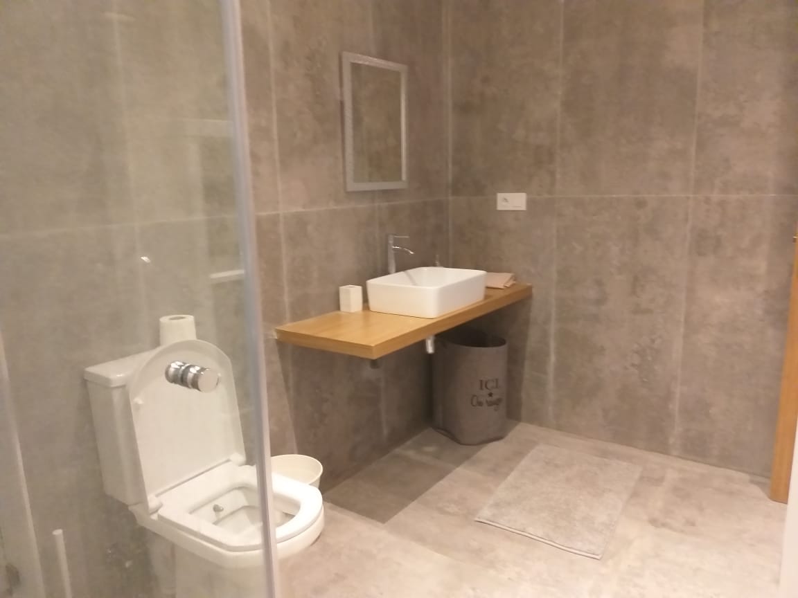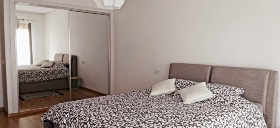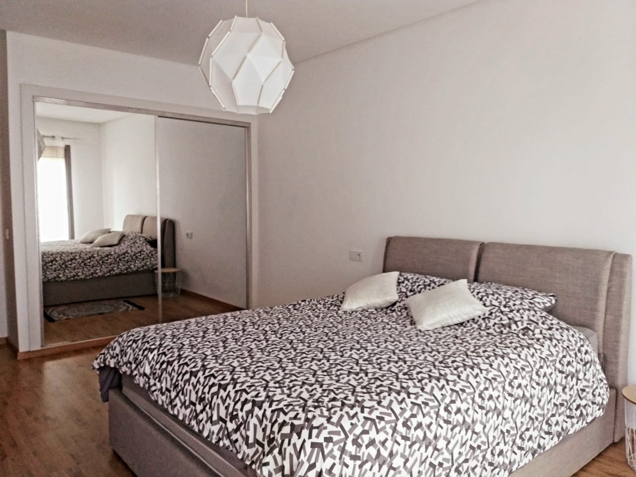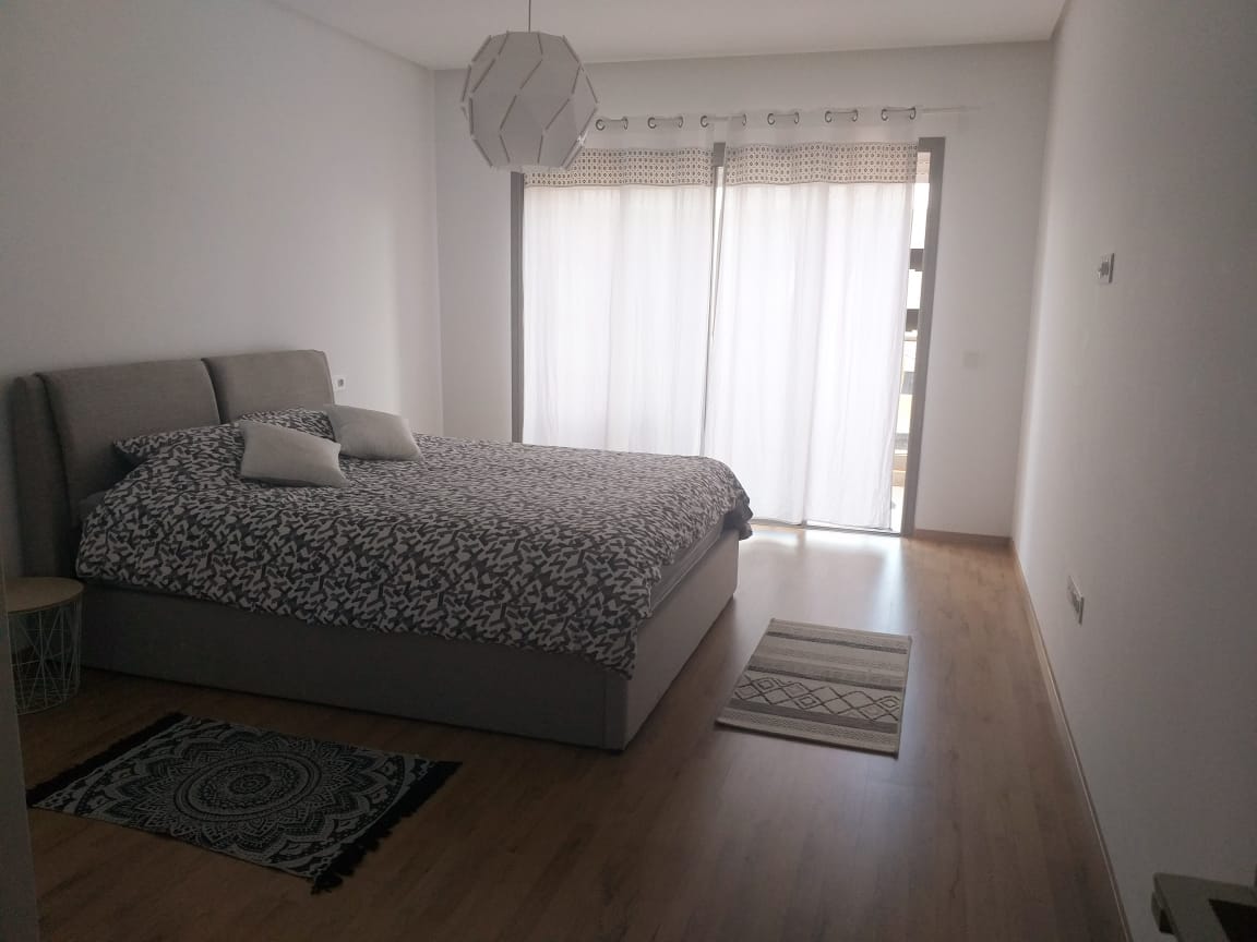 It is large, 80 m², and has a spacious bedroom with large windows leading to the terrace.