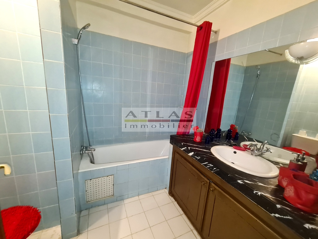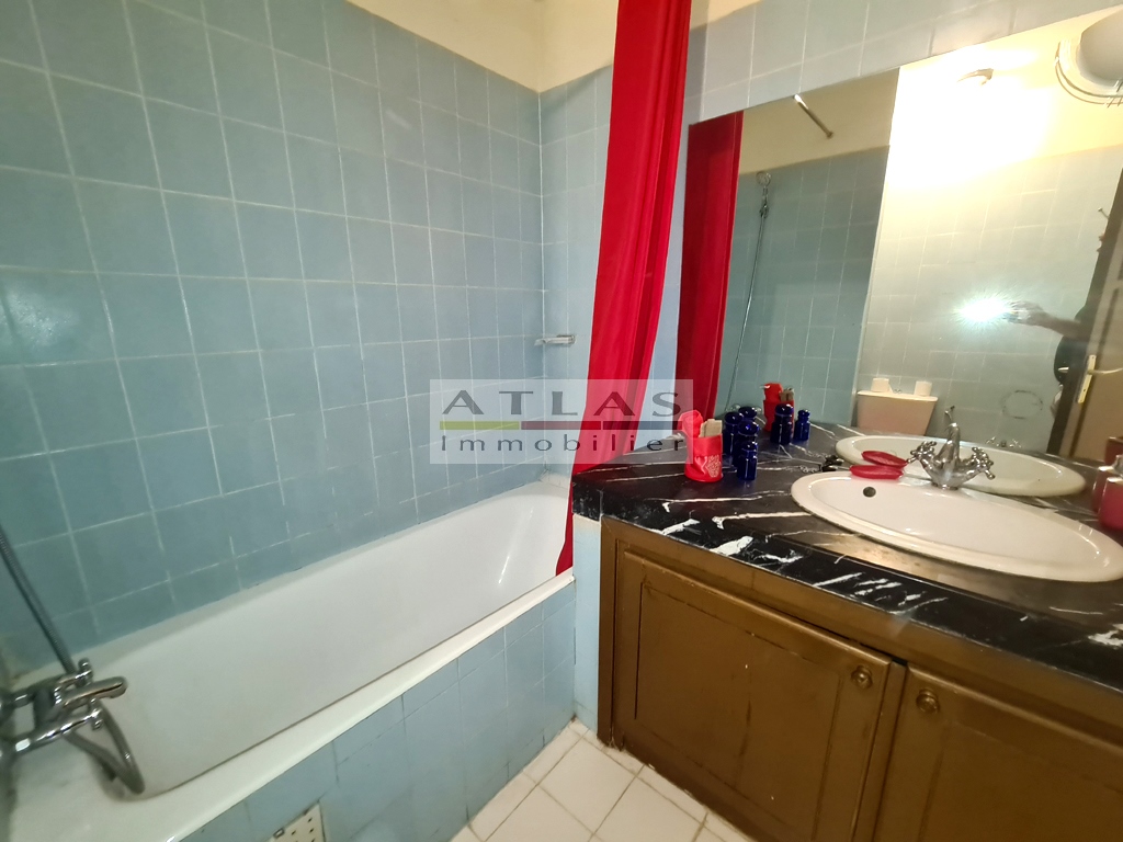 The apartment includes a guest toilet, a pleasant dining room with a small balcony, a closed fitted kitchen, gas burners and oven, fridge, a small adjoining laundry room with washing machine, a shared bathroom for the children. two large bedrooms with storage. This accommodation has air conditioning. Bright apartment. Fiber-connected building.