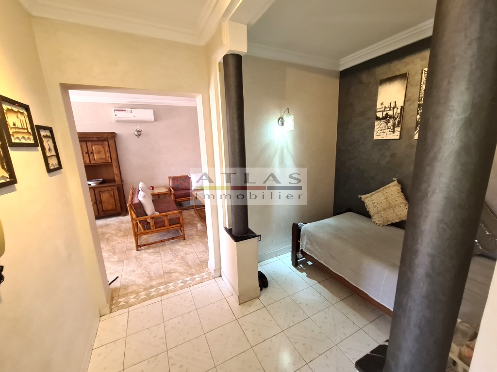 Ideal location for this apartment in downtown Marrakech, in an old building, of a 24/7 secure residence, this beautiful apartment with an area of 99 m² with balcony, is located on the second floor with elevator.