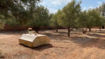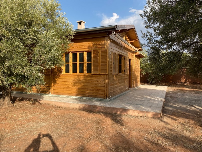 The land has an area of 2,100 m² with about forty olive trees, three eucalyptus and two fig trees.