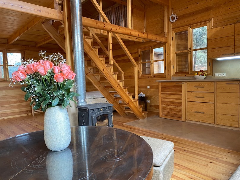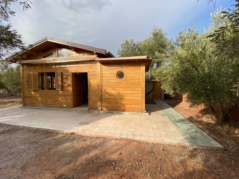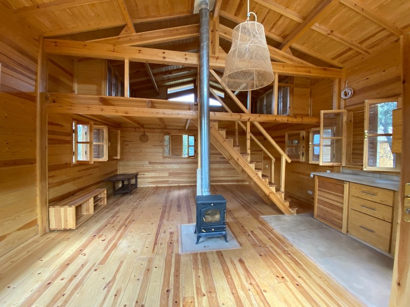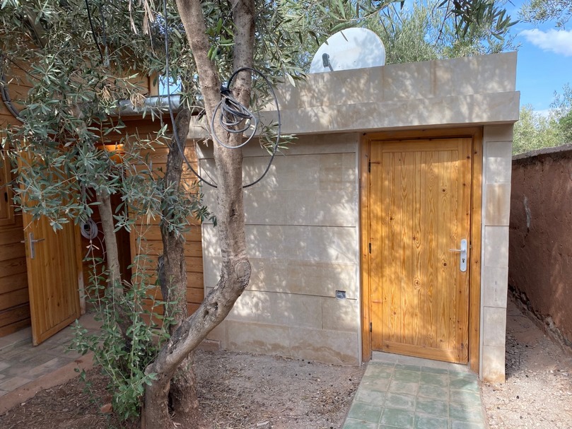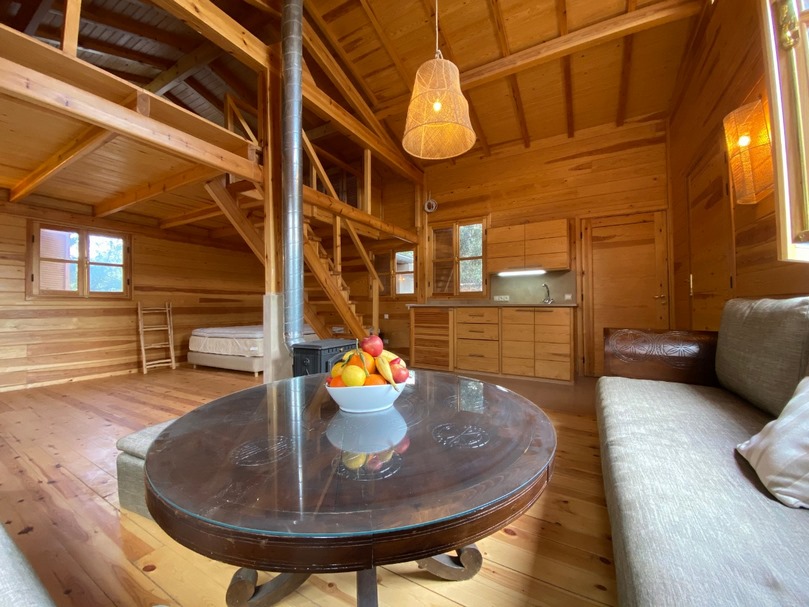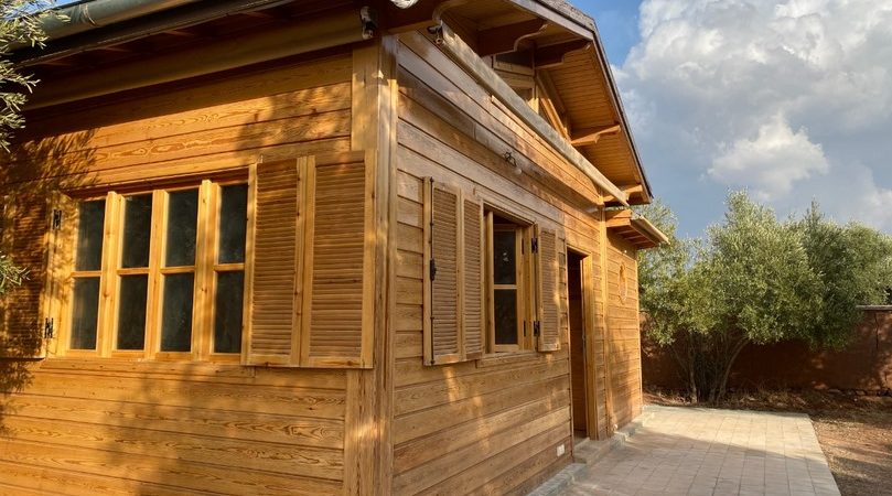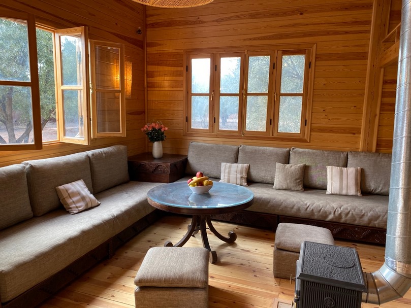 Built with the greatest care in 2016 by a carpenter with ancestral knowledge who came specially from the Middle Atlas, the 100% wood chalet occupies an area of 42 m² on the ground and a mezzanine of 22 m² with a kitchen.