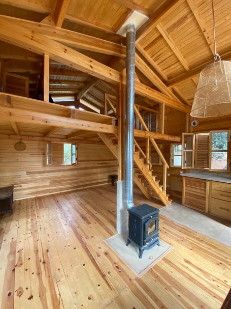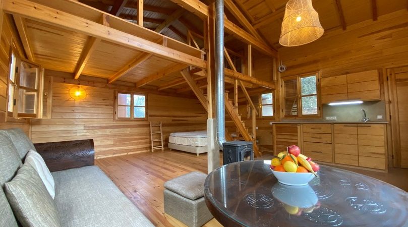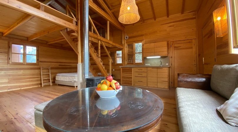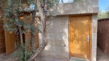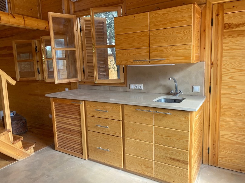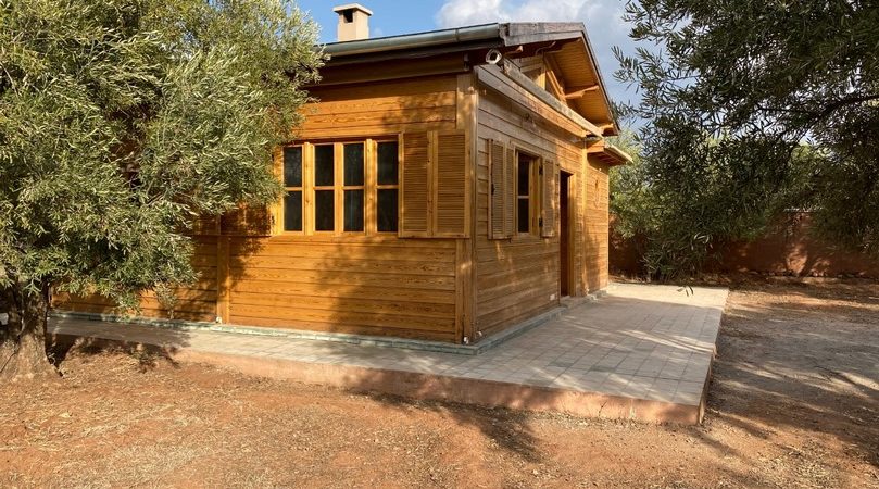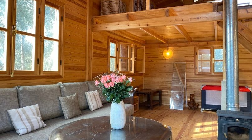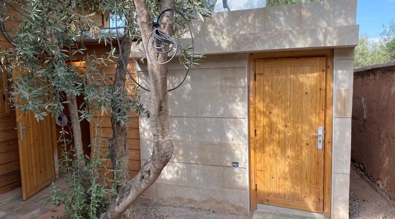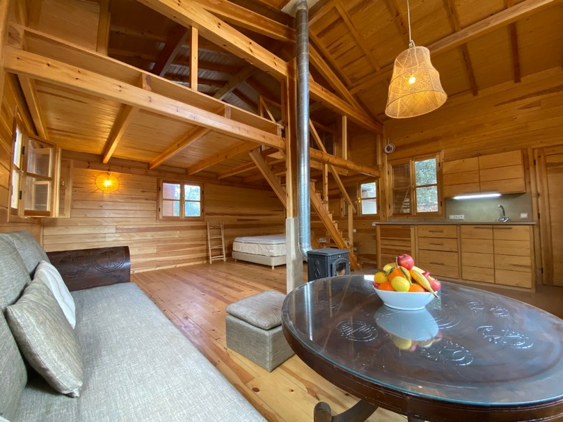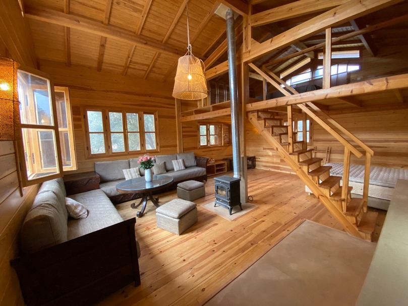 Built with the greatest care in 2016 by a carpenter with ancestral knowledge who came specially from the Middle Atlas, the 100% wood chalet occupies an area of 42 m² on the ground and a mezzanine of 22 m² with a kitchen.