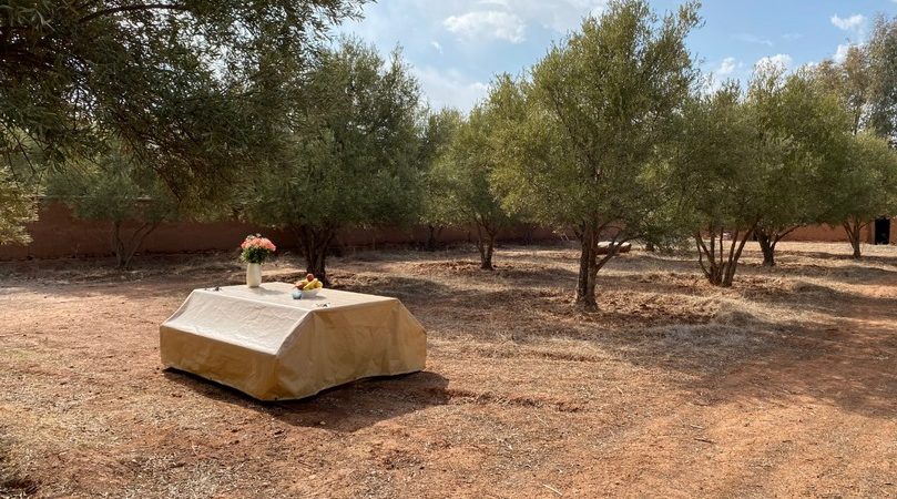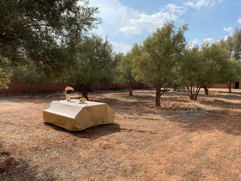 Located at the foot of the High Atlas, just 20 minutes from Marrakech, three kilometers from the village of Tahanaout and six kilometers from Terres d’Amanar, backing onto the hundred thousand hectares of the Toubkal National Park, is this chalet and its landscaped grounds.
