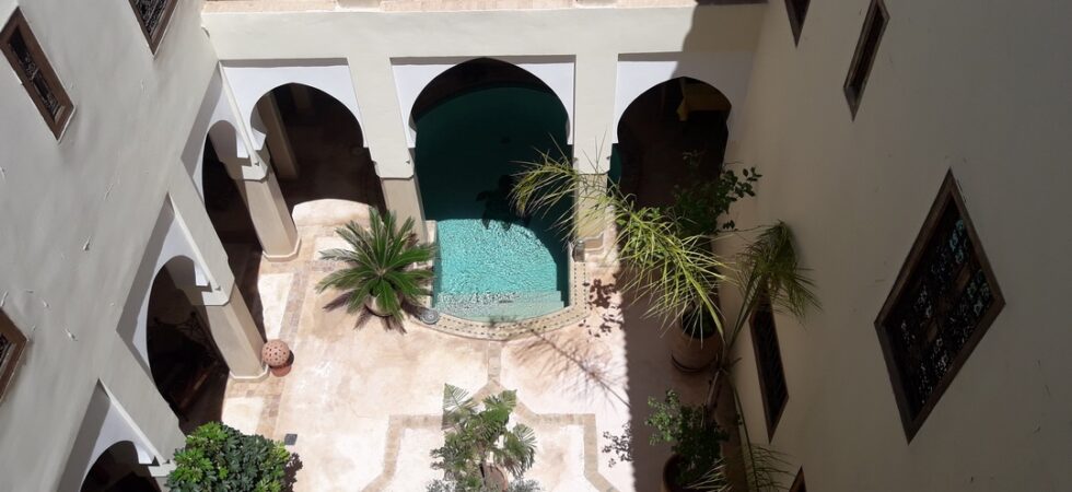 This riad and its adjoining Douiria making respectively 214 and 60 m² or 274 m² on the ground are located in the best Derb Dar el Bacha. Classified as a guest house, its owners use it exclusively for private use. Remarkable, the vast and luminous patio of 96 m ² decorated with a big pond, and the superb terrace with clear view.