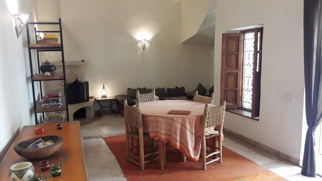 This riad and its adjoining Douiria making respectively 214 and 60 m² or 274 m² on the ground are located in the best Derb Dar el Bacha. Classified as a guest house, its owners use it exclusively for private use. Remarkable, the vast and luminous patio of 96 m ² decorated with a big pond, and the superb terrace with clear view.