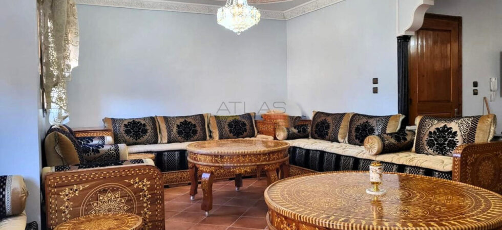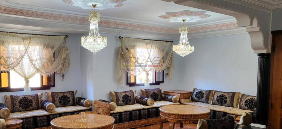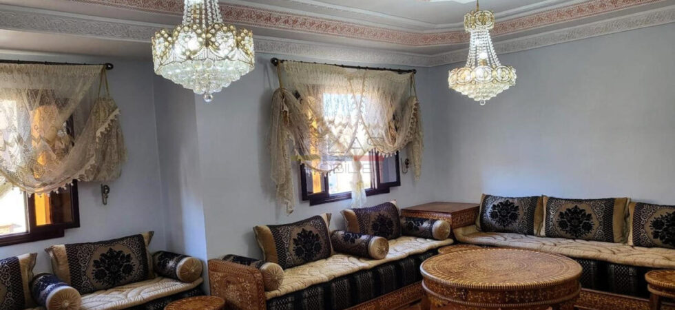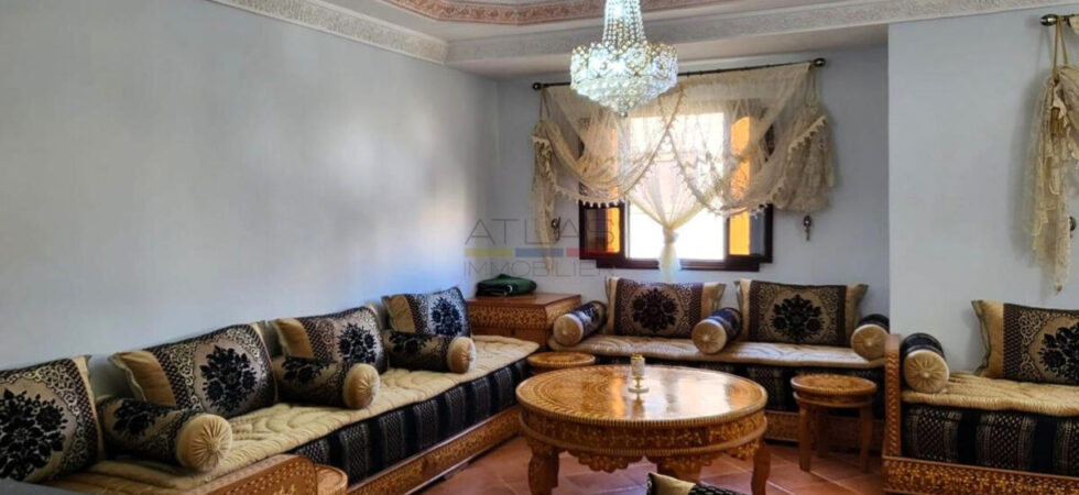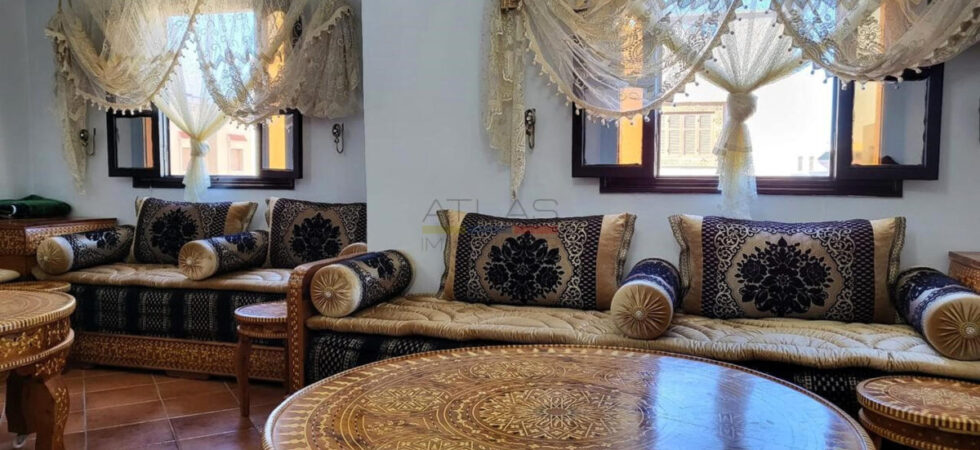 Available for long-term rental, this fully furnished 130 m² apartment is located on the 2nd floor of a quiet building in the Raounak district of Essaouira. West-facing, it enjoys plenty of natural light and offers a spacious and comfortable living environment.