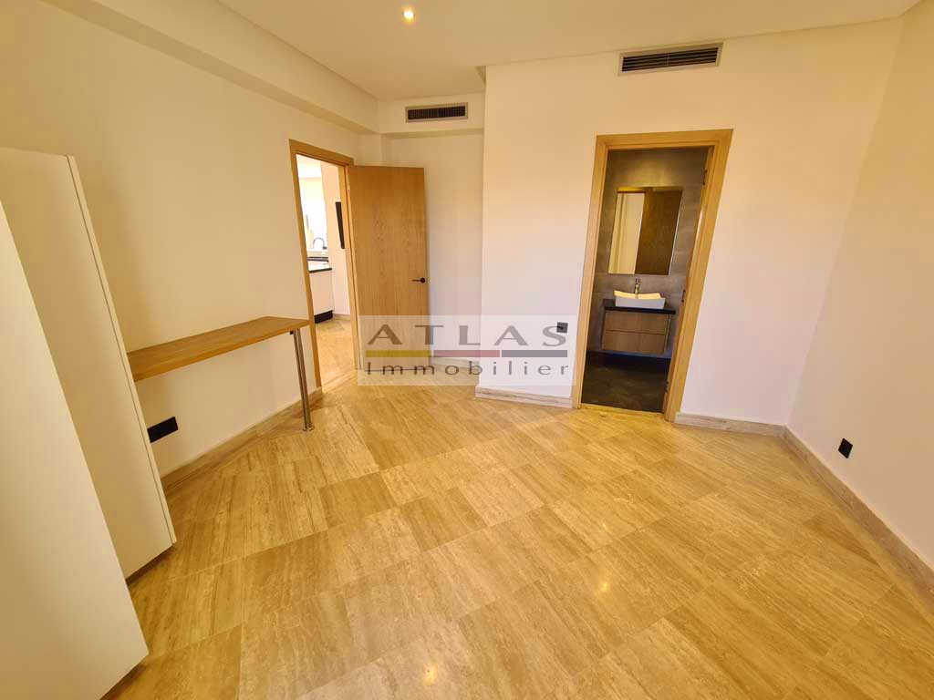 Very bright apartment located in the hypercentre of the Guéliz district, with an area of 120 m², titled including 107 m² of living space, facing East / West, located on the 5th floor of a high standing residence. Concierge available 24/7.