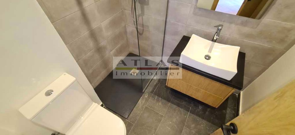 The apartment offers a huge living room – very bright dining room opening onto a real terrace without vis-à-vis, a fireplace for the cooler nights, an equipped American kitchen, fridge, oven, gas hob and extractor also overlooking another terrace without vis-à-vis.