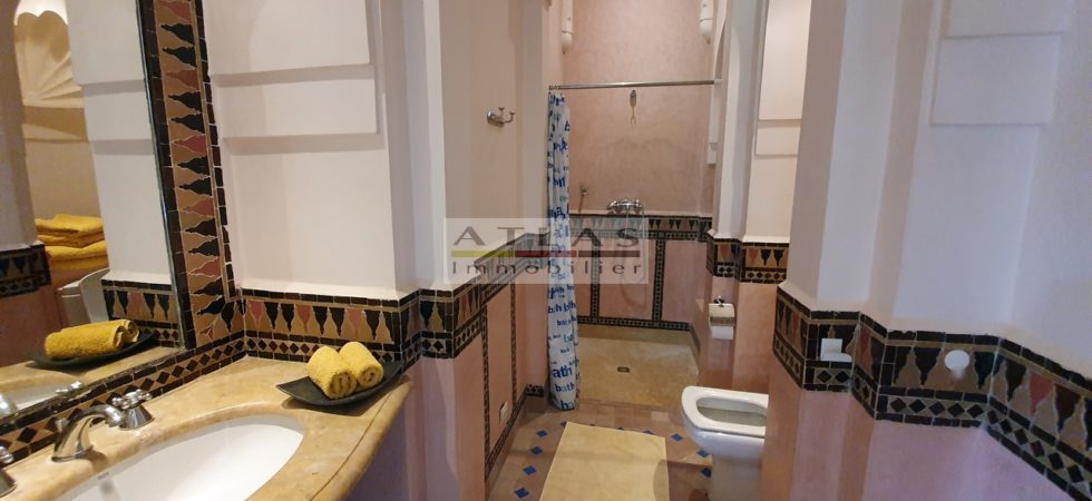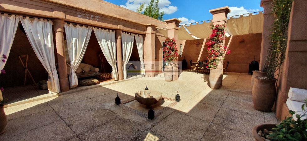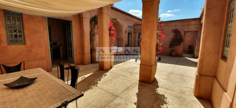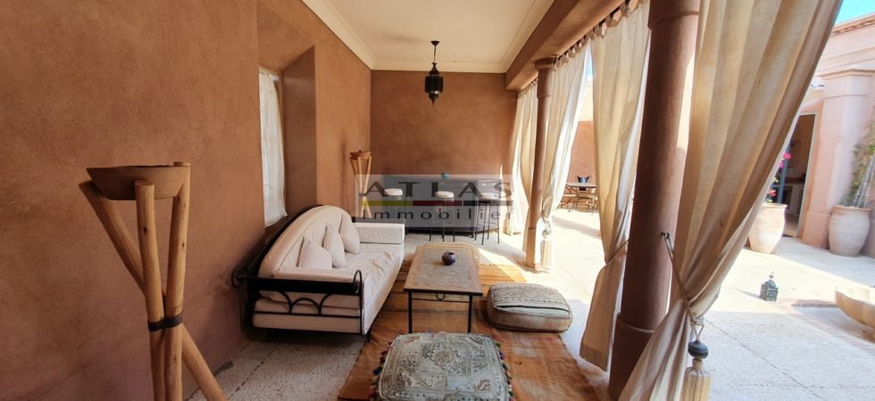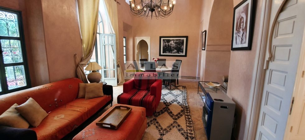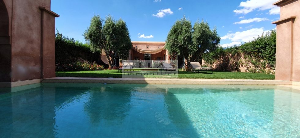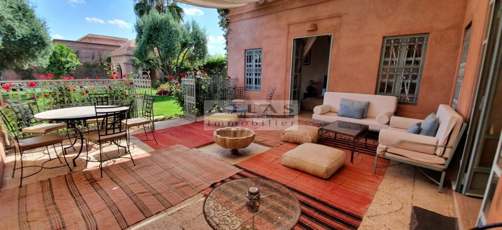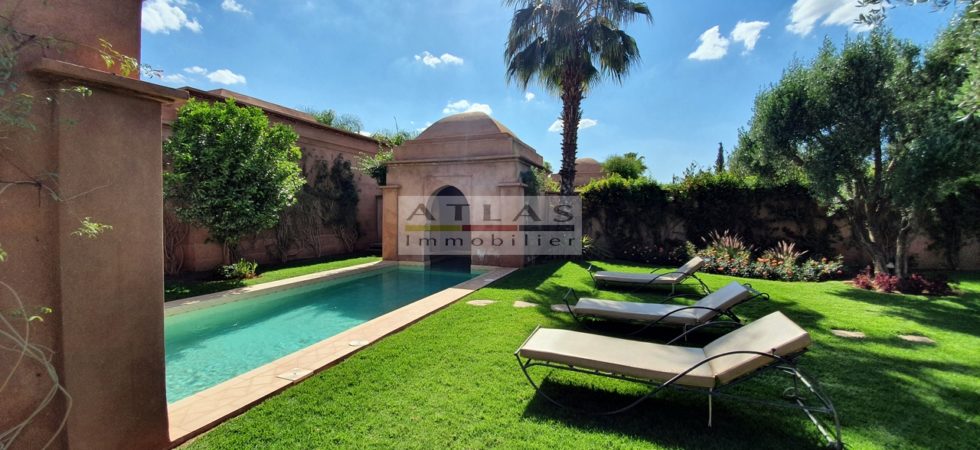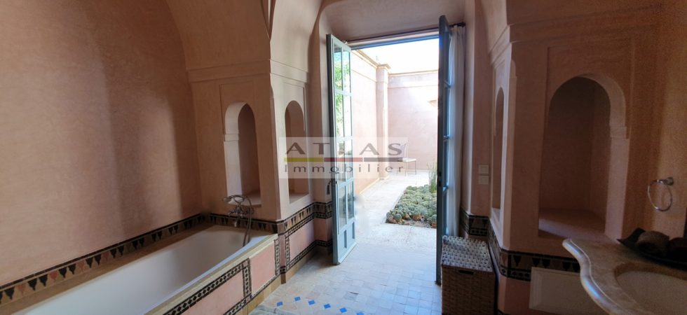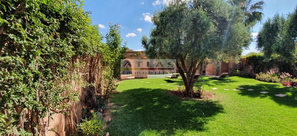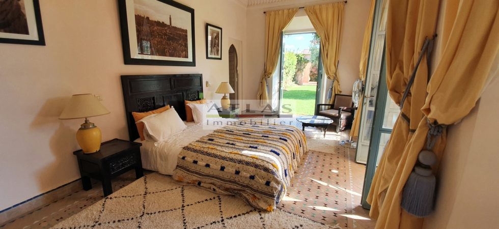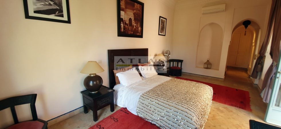 A very sought-after type of villa in Marrakech, this Charles Boccara signature single storey property is located in a magnificent wooded area with Andalusian gardens, pool-house, SPA, tennis court, bowling alley etc …