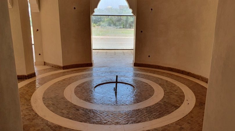 Floor covering: living room and bedroom in marble, with traditional Zellige patterning,