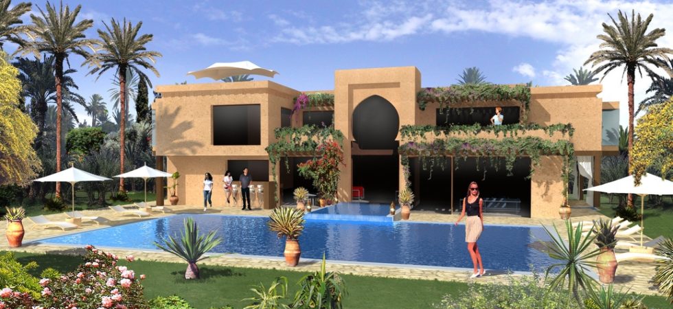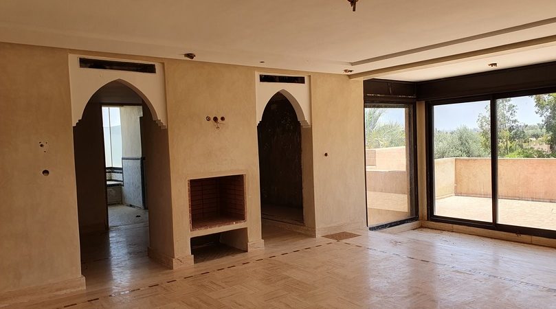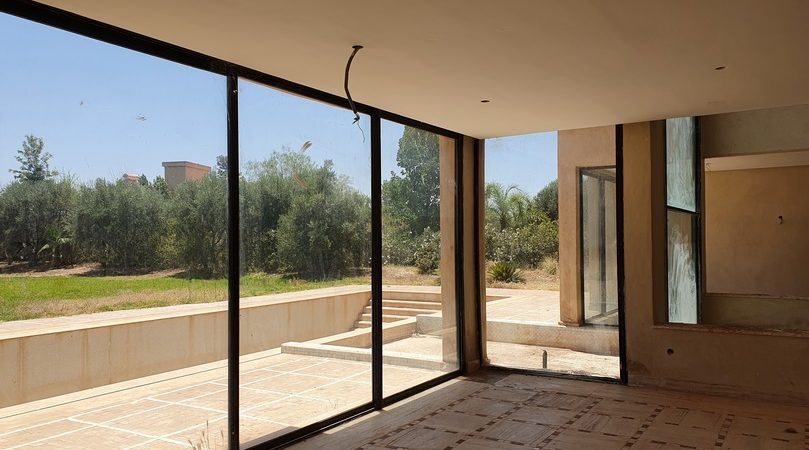 One of the last two available villas in this luxurious residential project of eleven villas located on the road to Ouarzazate twelve kilometers from Marrakech. Access directly from the road, no track. Beautiful Atlas views, not overlooked.