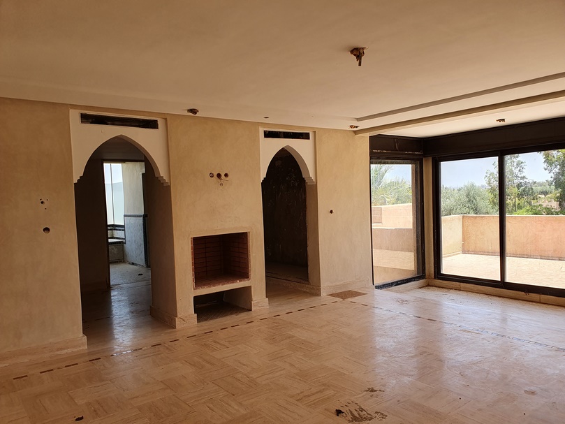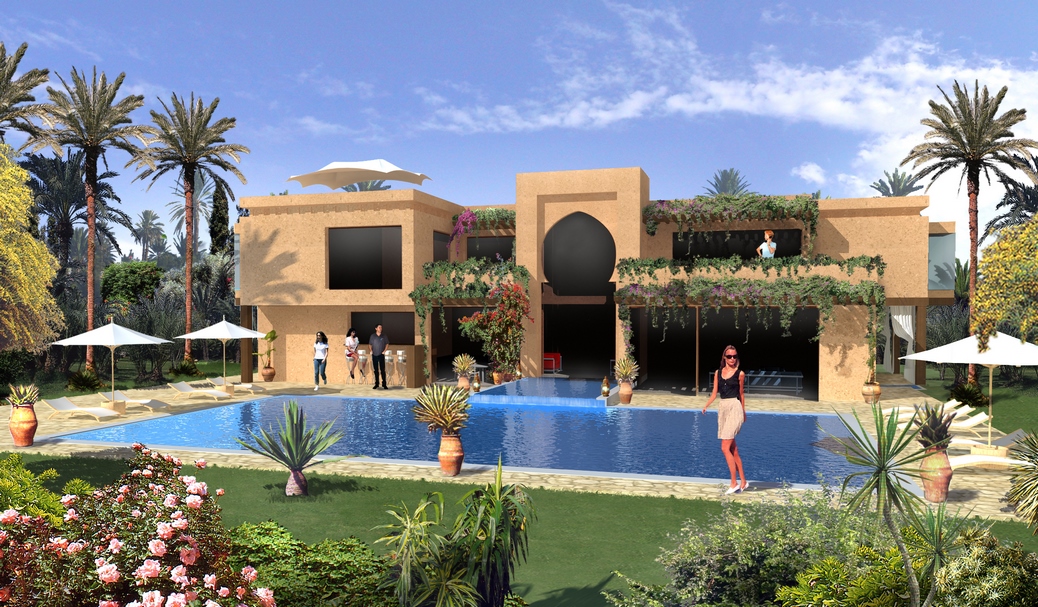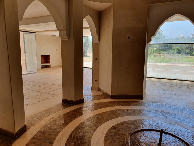 One of the last two available villas in this luxurious residential project of eleven villas located on the road to Ouarzazate twelve kilometers from Marrakech. Access directly from the road, no track. Beautiful Atlas views, not overlooked.