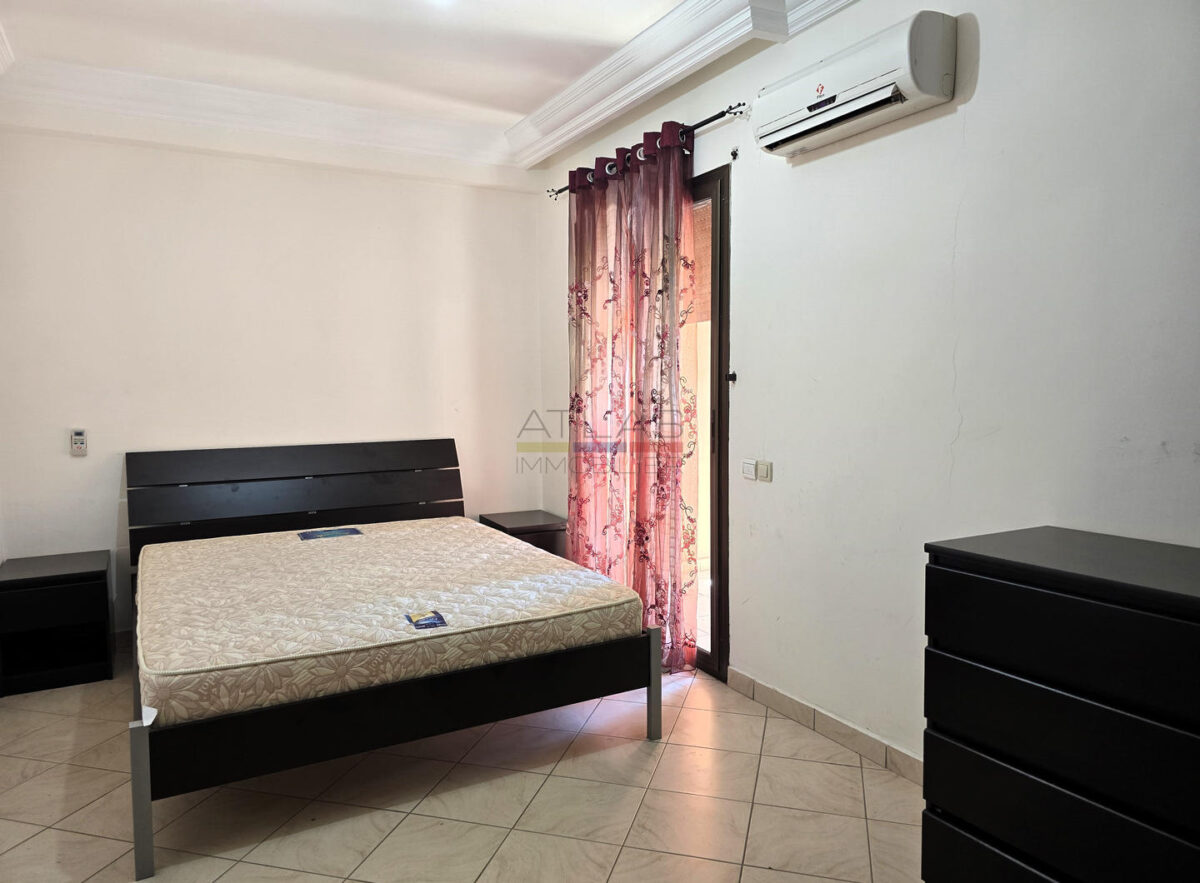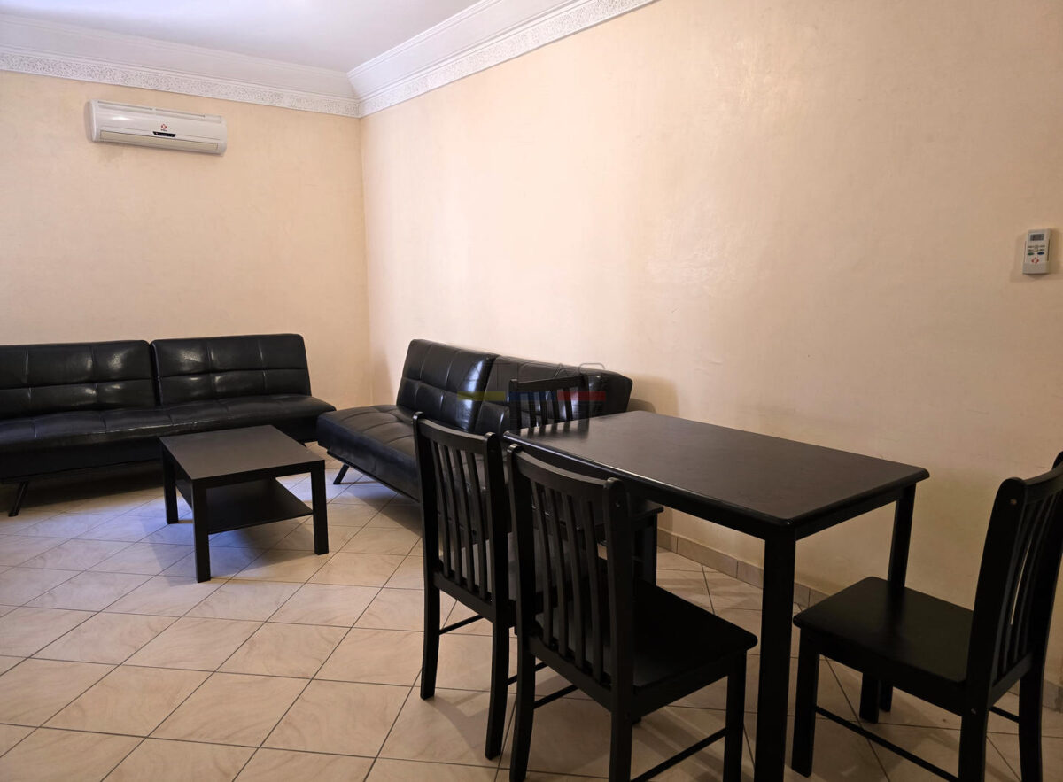Available for long-term rental, this furnished apartment is ideally located on Route de Casa, just 100 meters from Madame Plaza, in a quiet and well-maintained residential building.