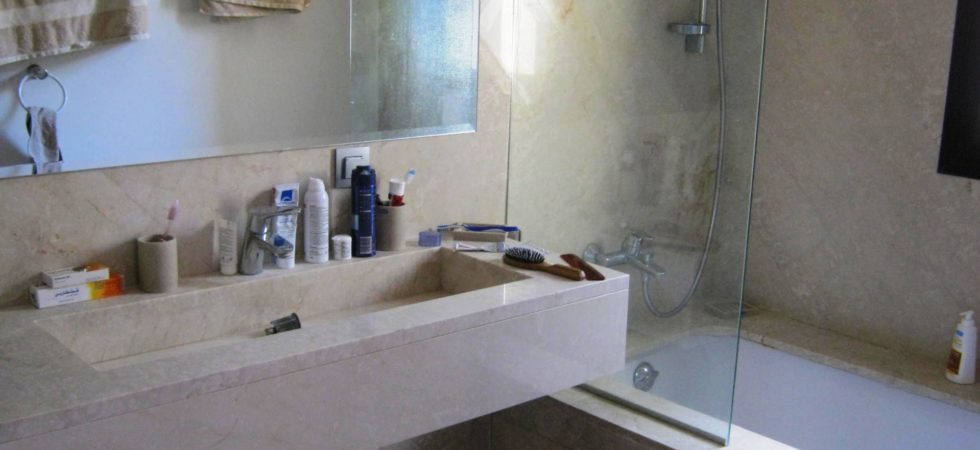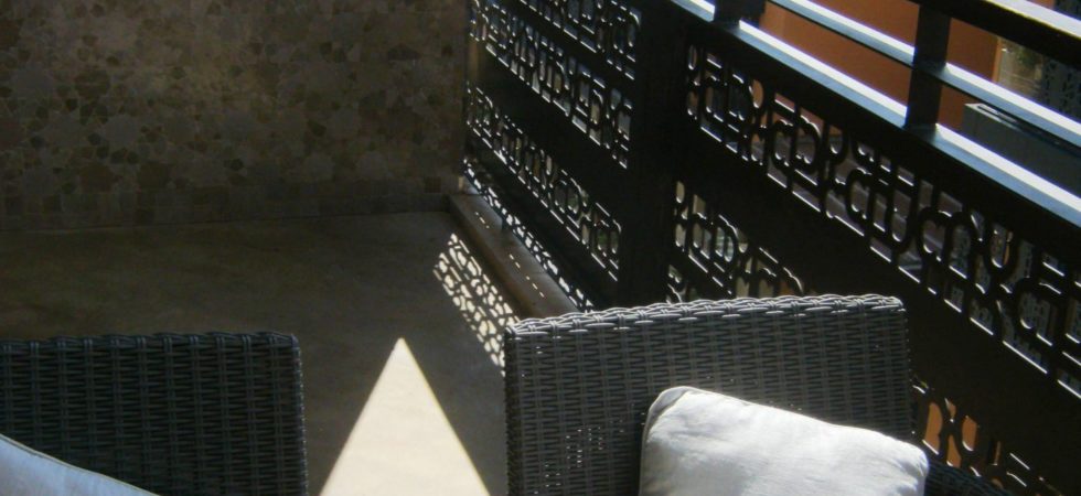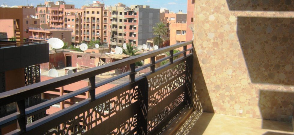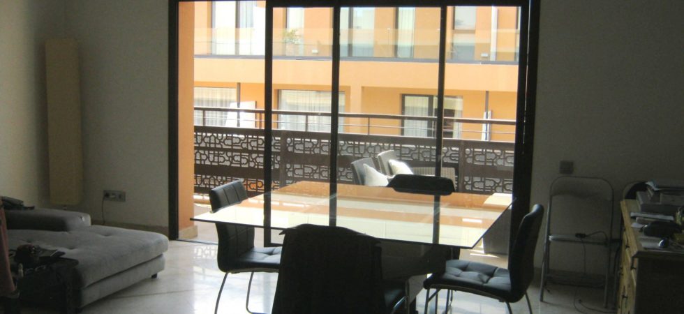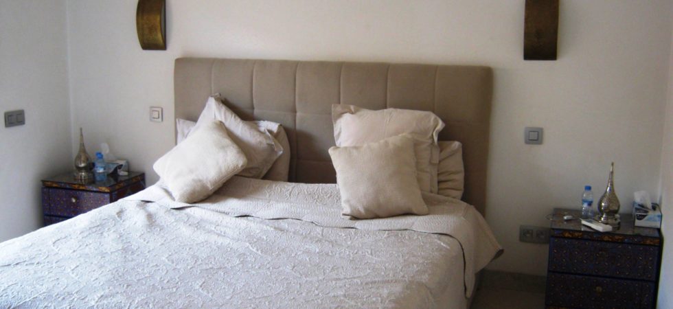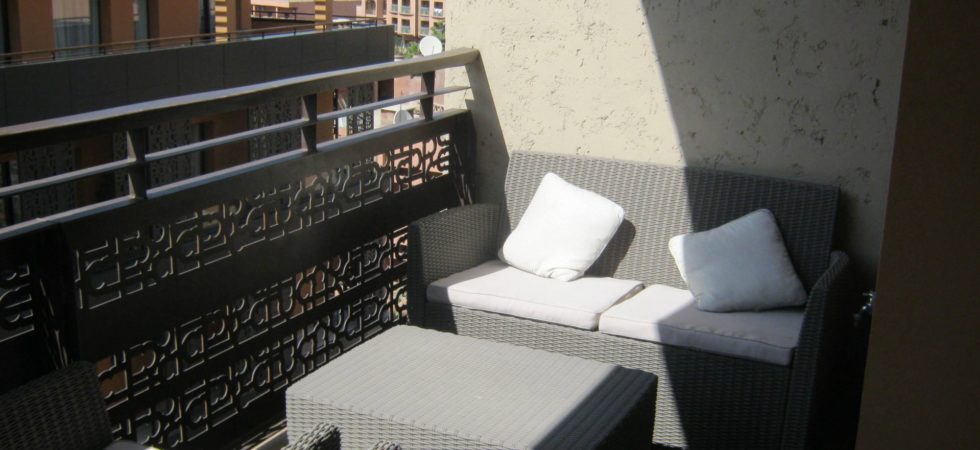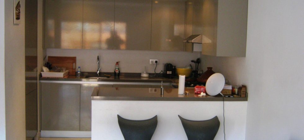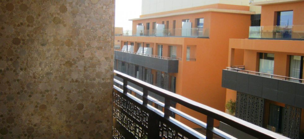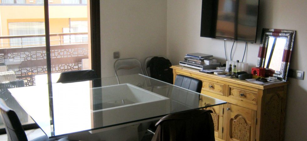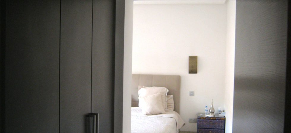 This apartment is ideally located in the center of Marrakech in one of the most beautiful real estate projects in Marrakech. It consists of an entrance, two living room and dining room overlooking the terrace, a kitchen, a master suite with dressing room, bathroom, toilet and terrace.
