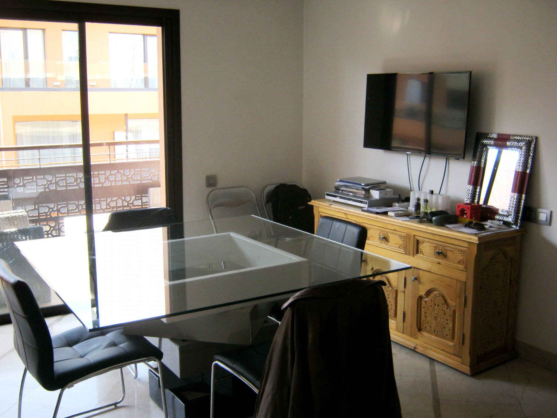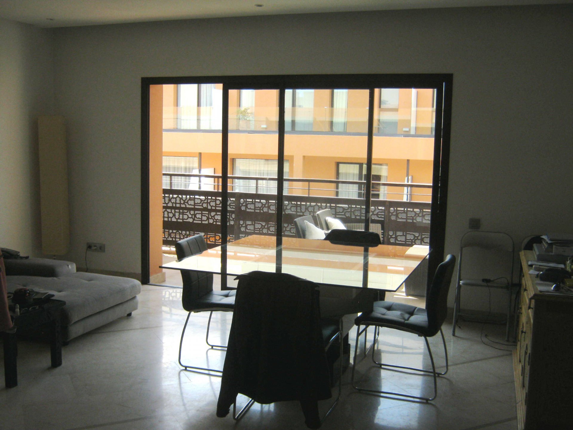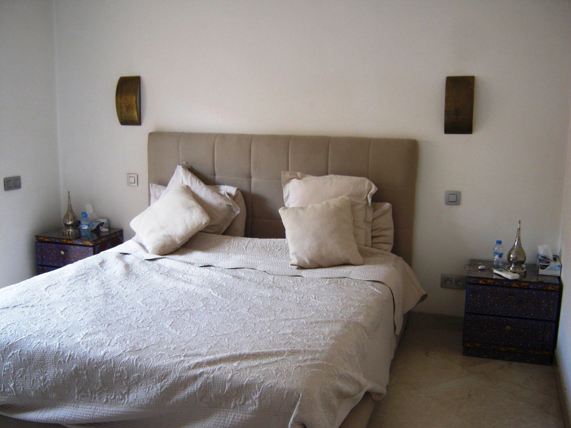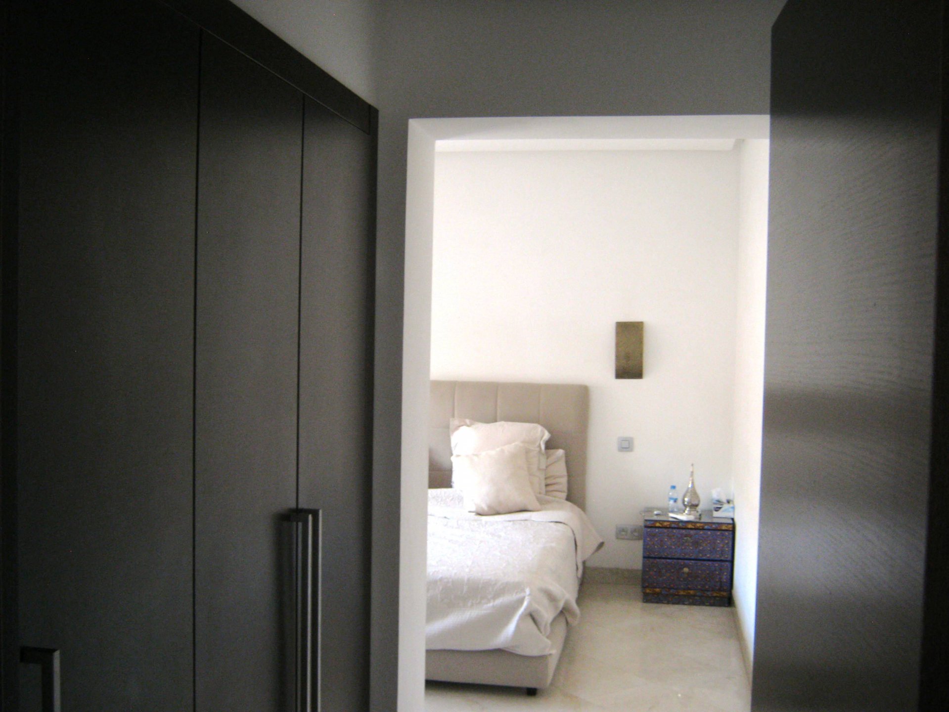 This apartment is ideally located in the center of Marrakech in one of the most beautiful real estate projects in Marrakech. It consists of an entrance, two living room and dining room overlooking the terrace, a kitchen, a master suite with dressing room, bathroom, toilet and terrace.