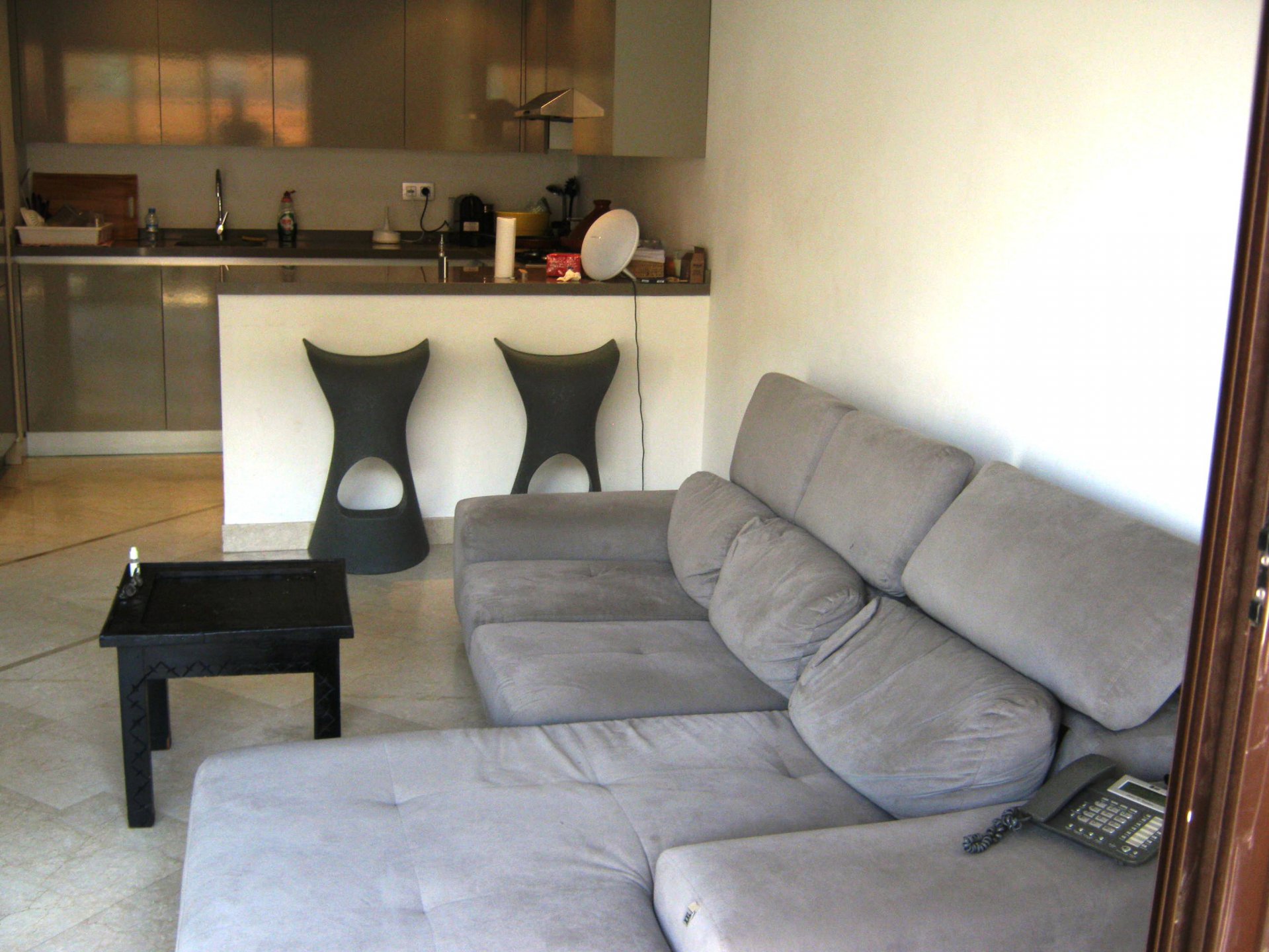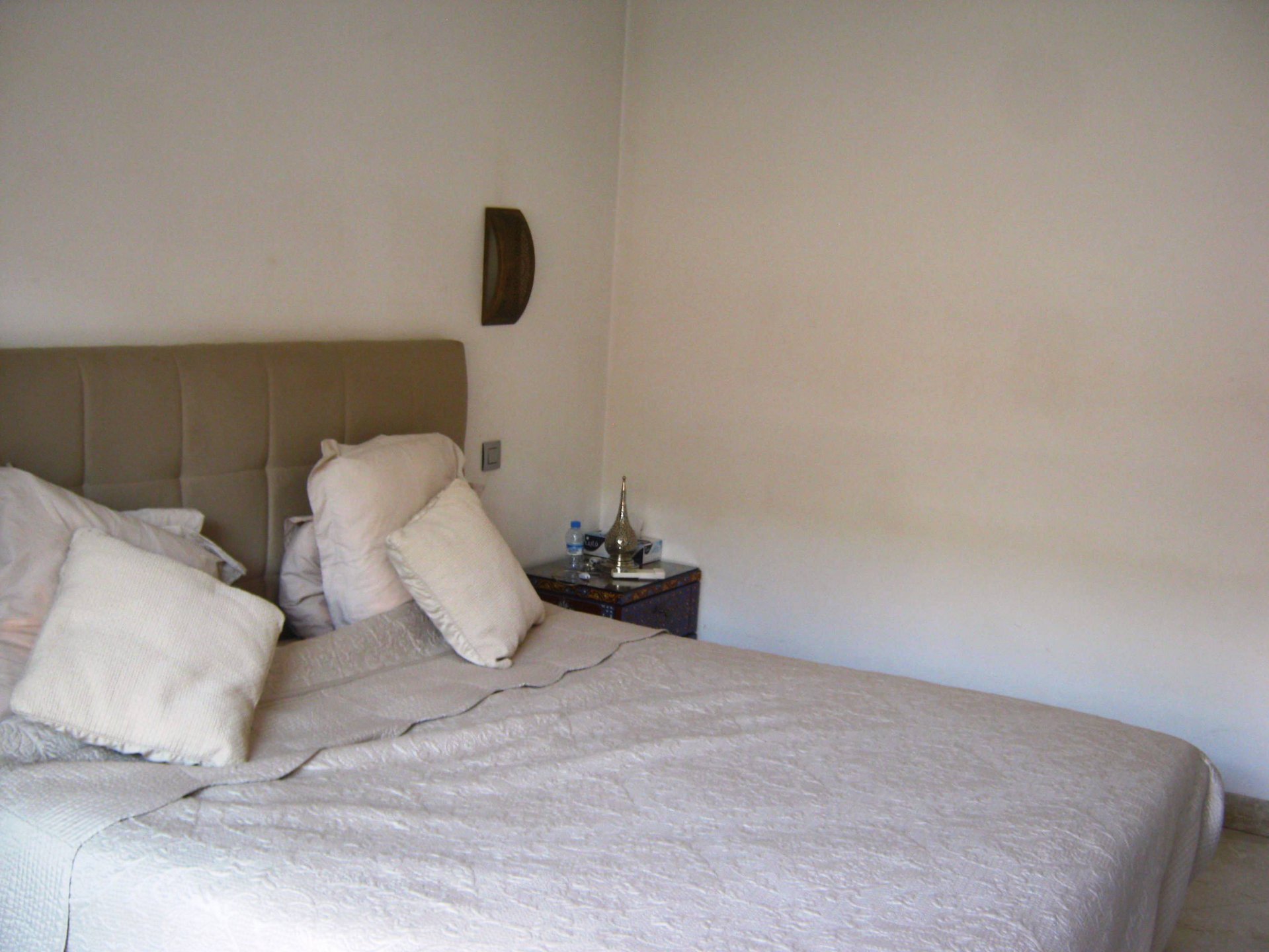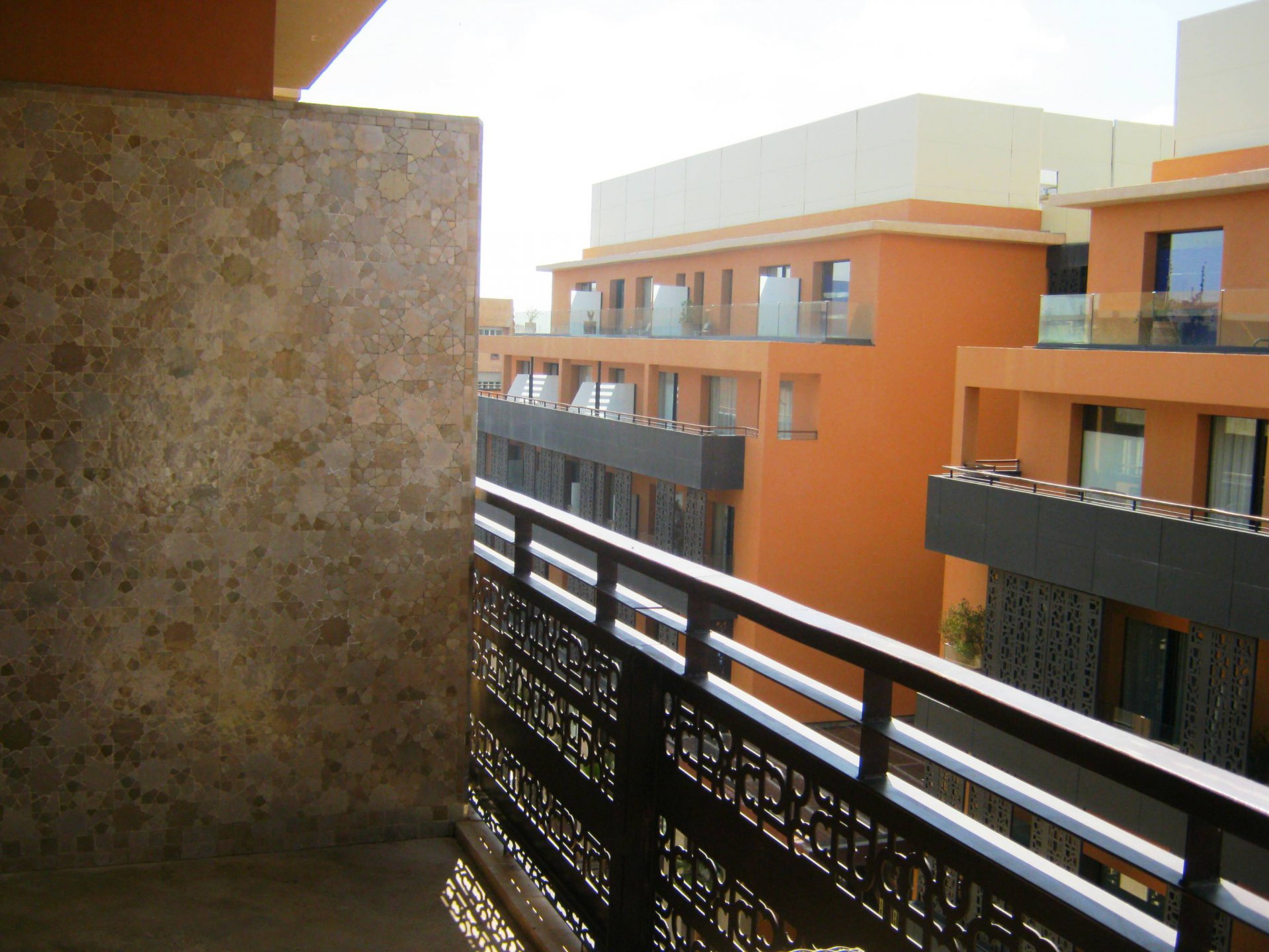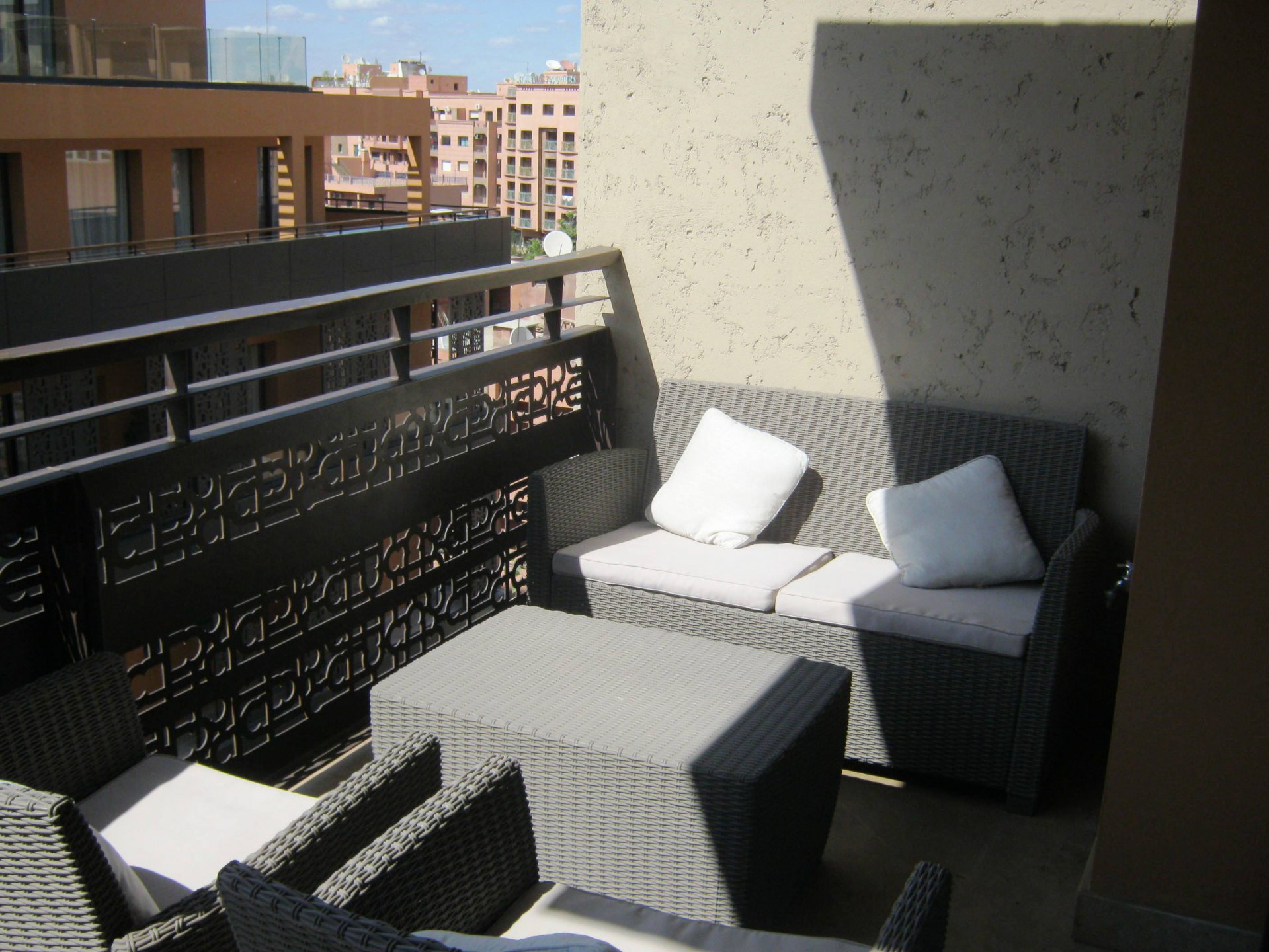 This apartment is ideally located in the center of Marrakech in one of the most beautiful real estate projects in Marrakech. It consists of an entrance, two living room and dining room overlooking the terrace, a kitchen, a master suite with dressing room, bathroom, toilet and terrace.