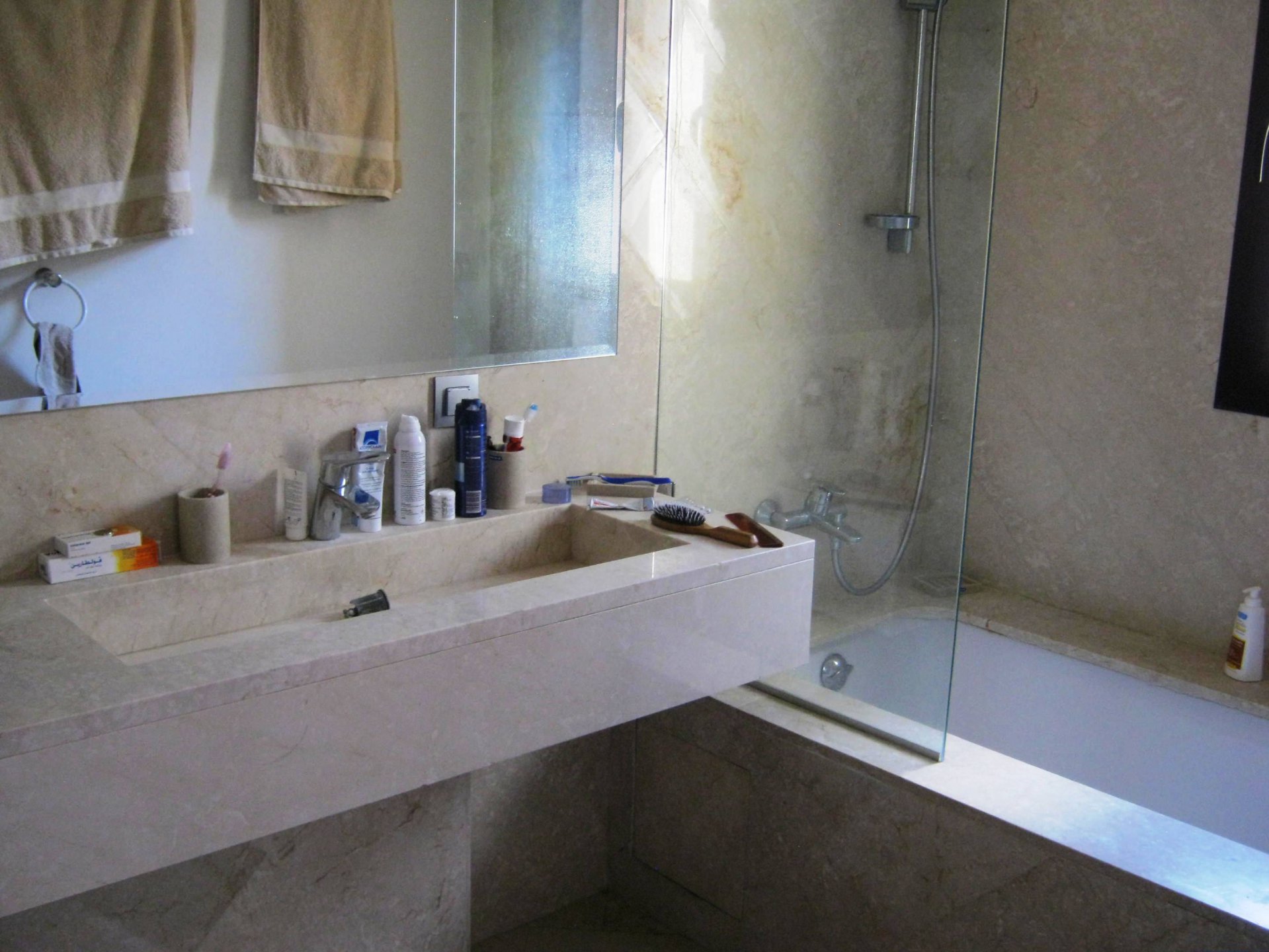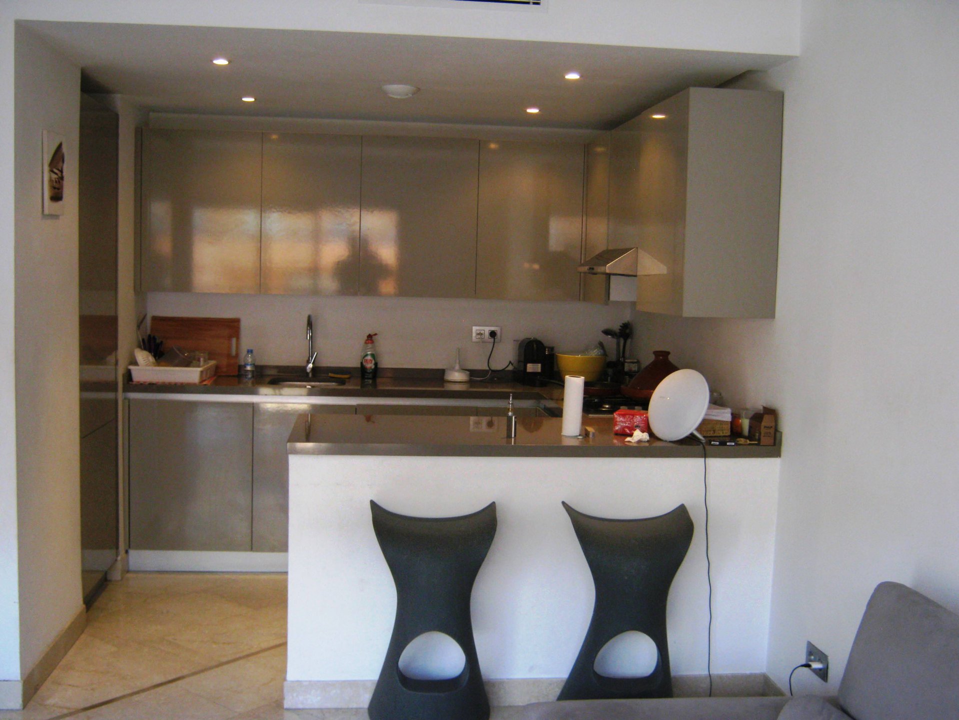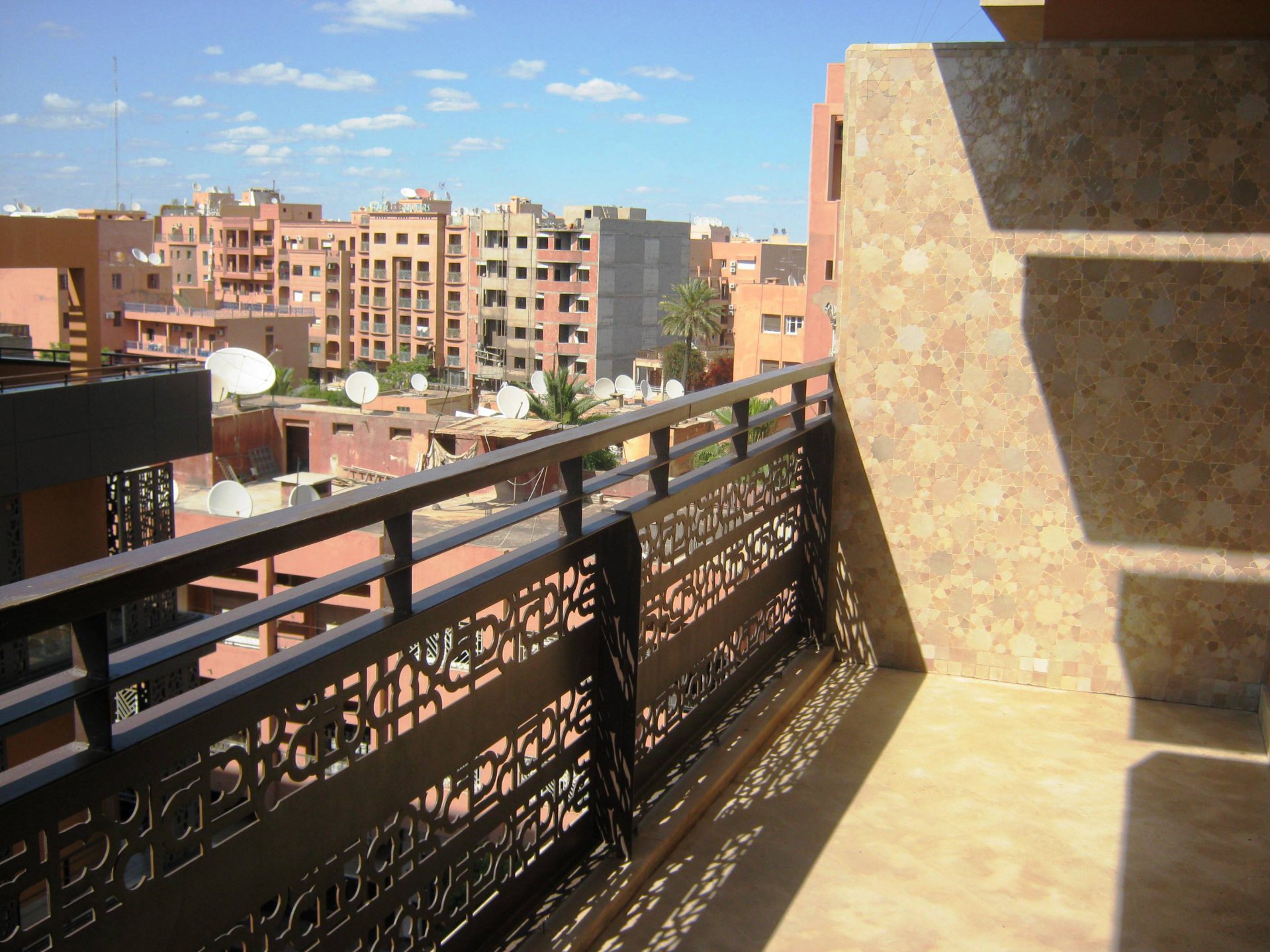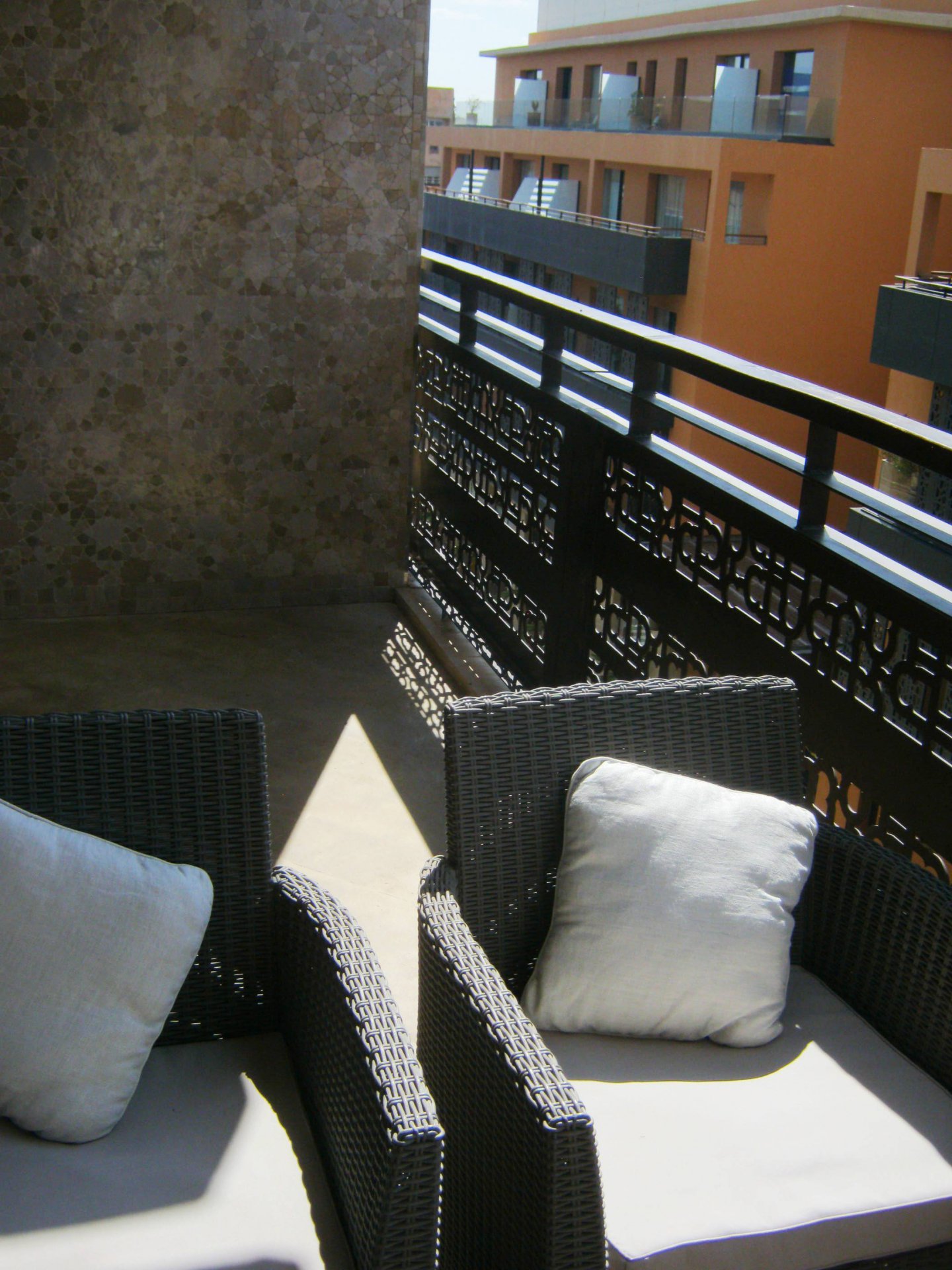 This apartment is ideally located in the center of Marrakech in one of the most beautiful real estate projects in Marrakech. It consists of an entrance, two living room and dining room overlooking the terrace, a kitchen, a master suite with dressing room, bathroom, toilet and terrace.