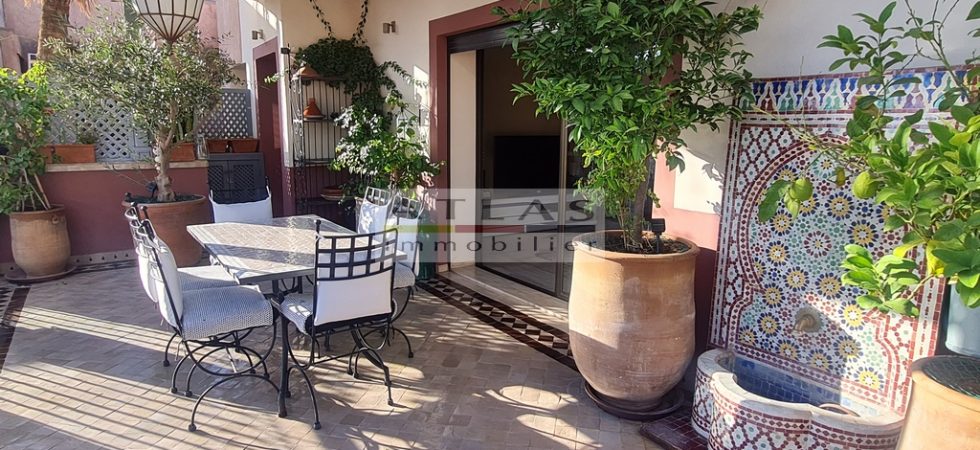 Discover a luxurious 167 m² titled apartment, on the top floor and not overlooked, offering an exclusive lifestyle in the heart of Gueliz, one of the most popular districts of Marrakech. This sumptuous residence, erected in a recent building, is distinguished by its refined finishes and its high-end atmosphere.