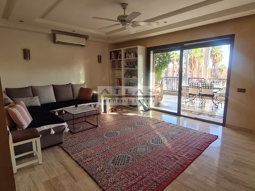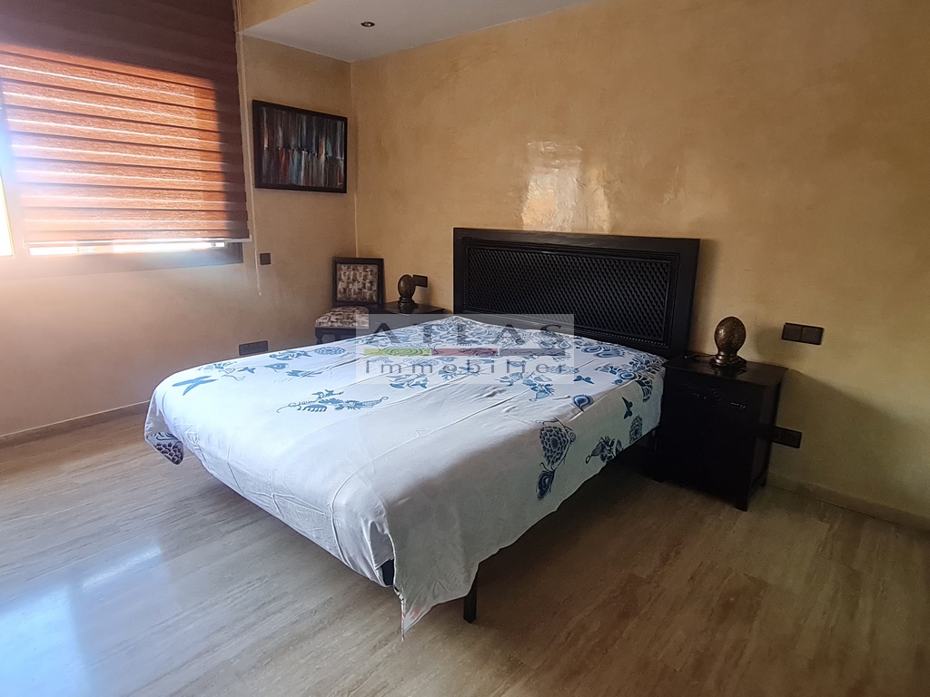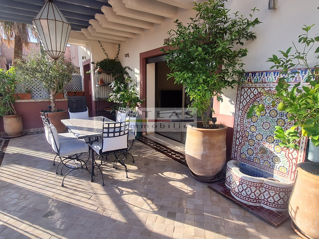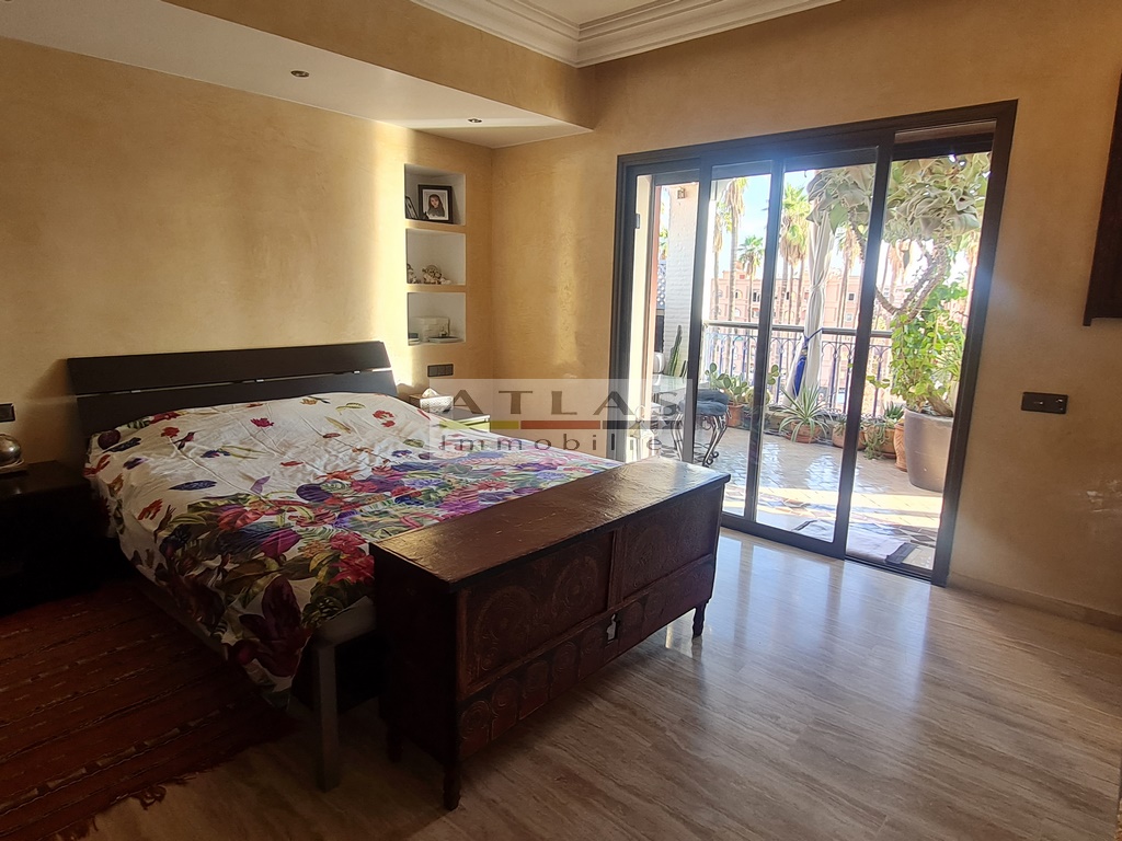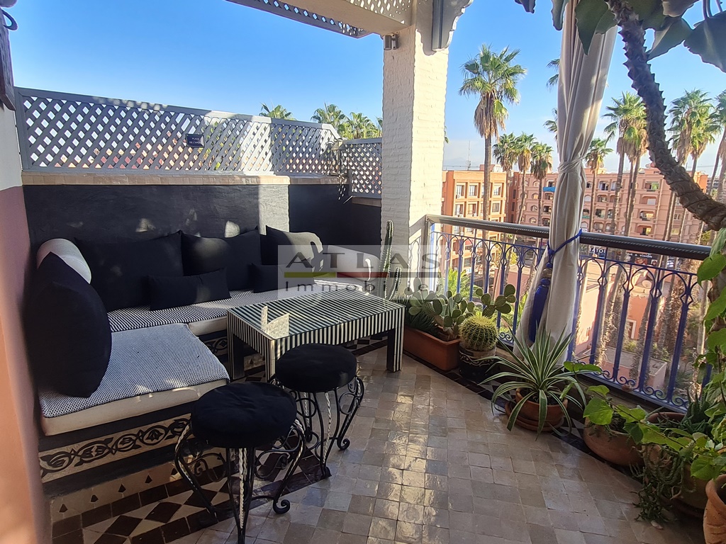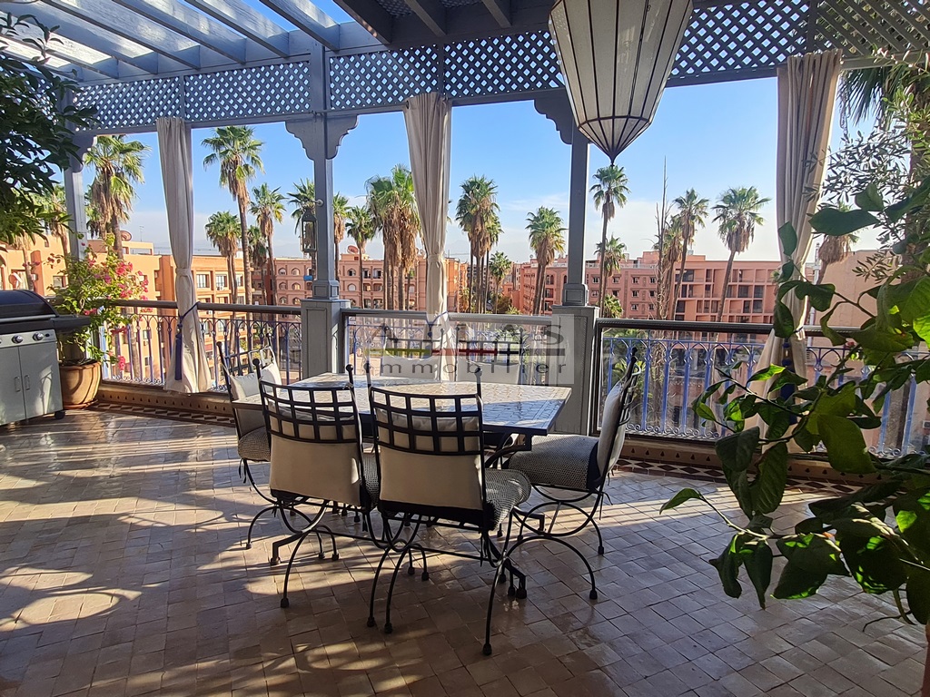 Discover a luxurious 167 m² titled apartment, on the top floor and not overlooked, offering an exclusive lifestyle in the heart of Gueliz, one of the most popular districts of Marrakech. This sumptuous residence, erected in a recent building, is distinguished by its refined finishes and its high-end atmosphere.