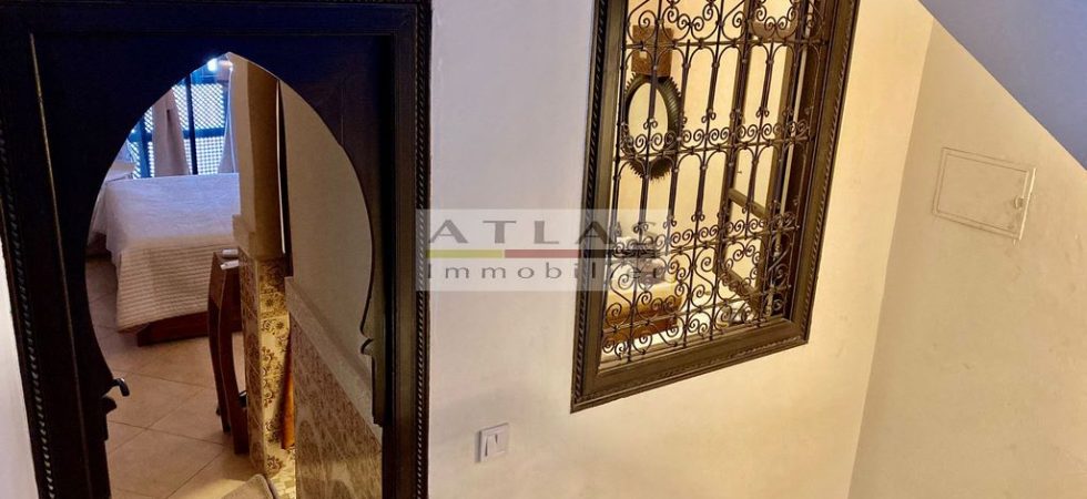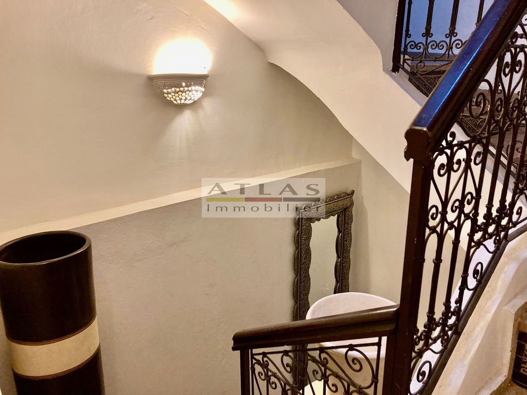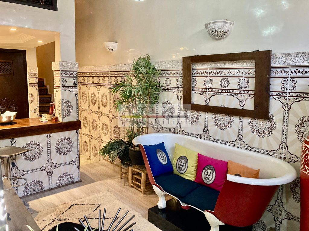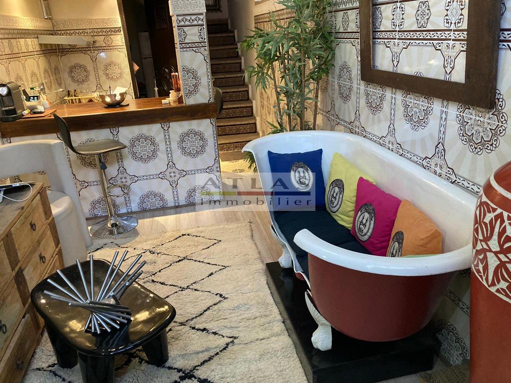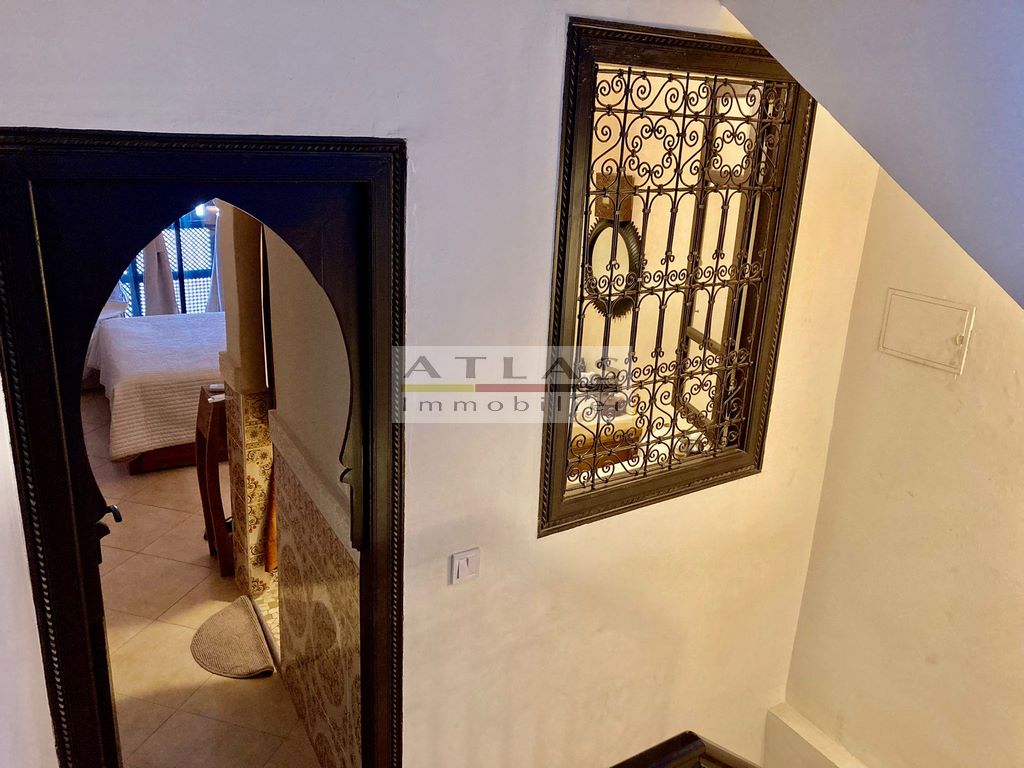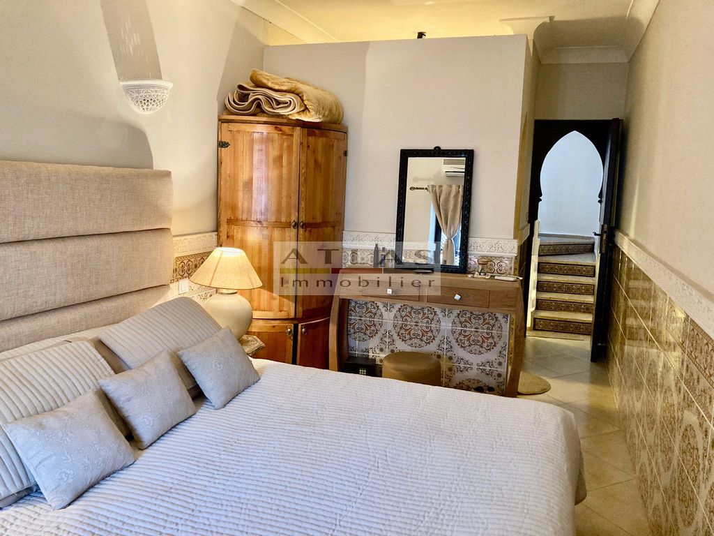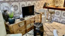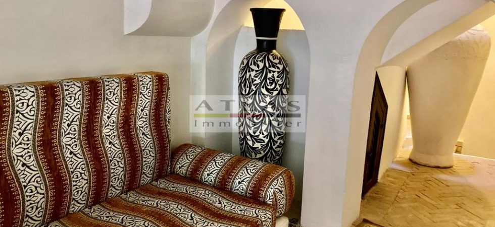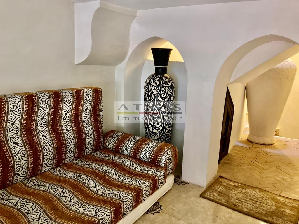 This beautiful, comfortable and well-equipped douiria with fireplace and air conditioning comprises on the ground floor a spacious traditional Moroccan living room.