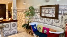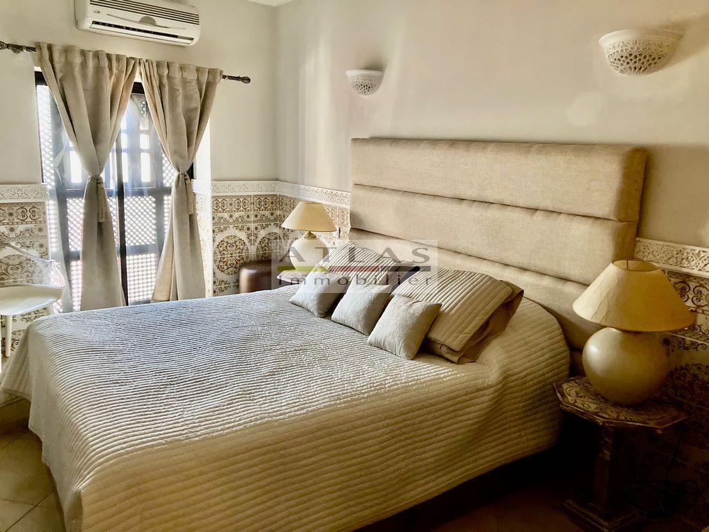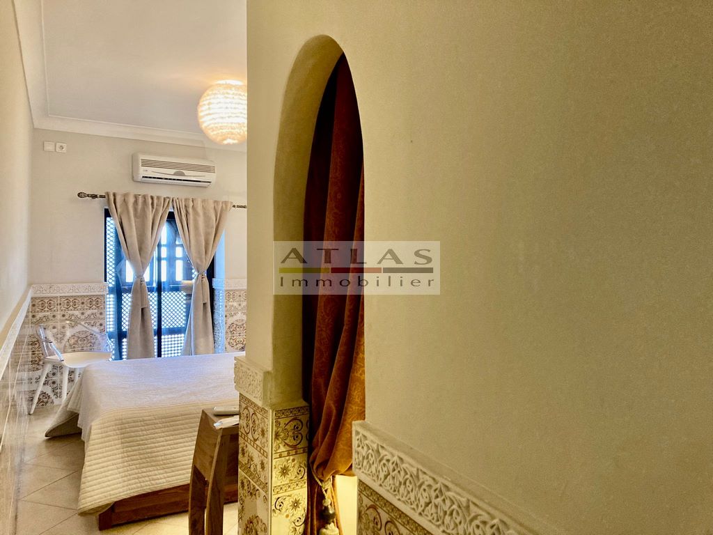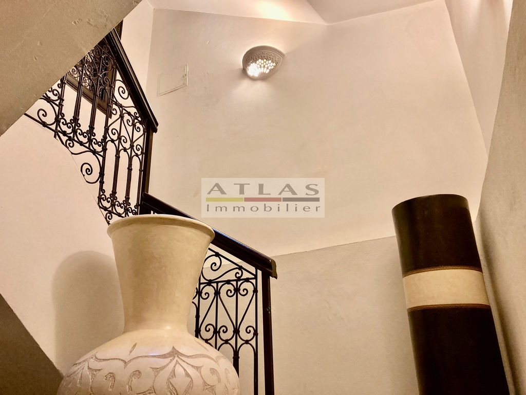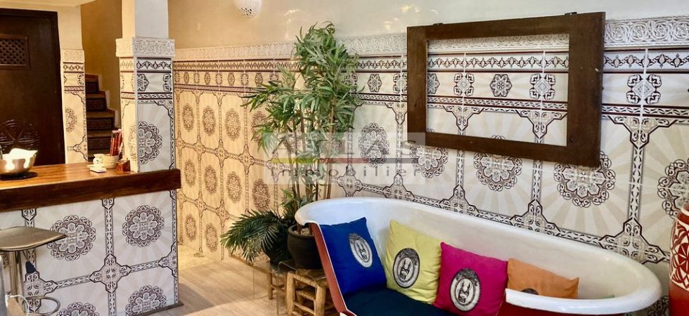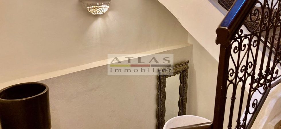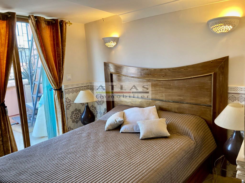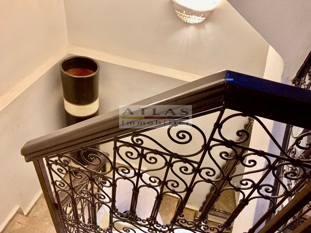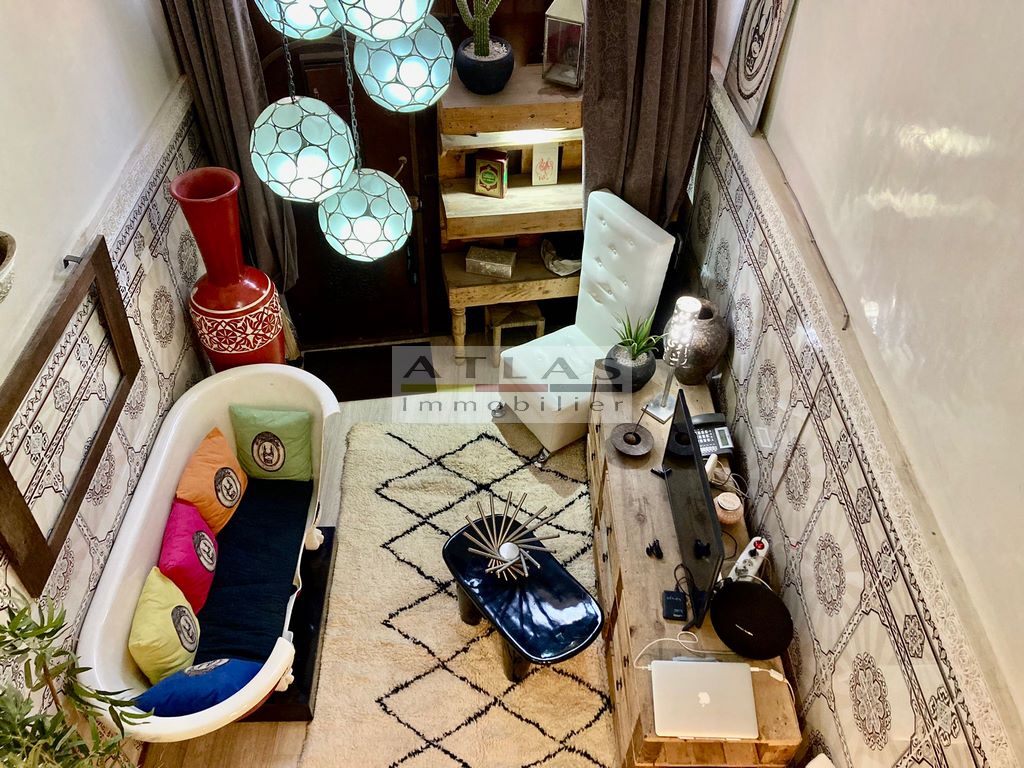 This beautiful, comfortable and well-equipped douiria with fireplace and air conditioning comprises on the ground floor a spacious traditional Moroccan living room.