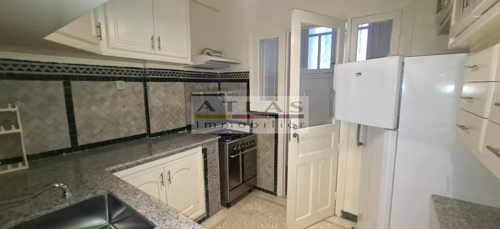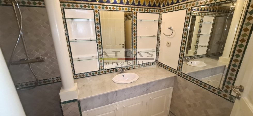 Located in the most sought after area of Marrakech, close to restaurants and all shops, in an old residence with lift, 24/7 surveillance, our Atlasimmobilier agency offers you this charming apartment on the ground floor with an area of 95 m² of living space facing east.