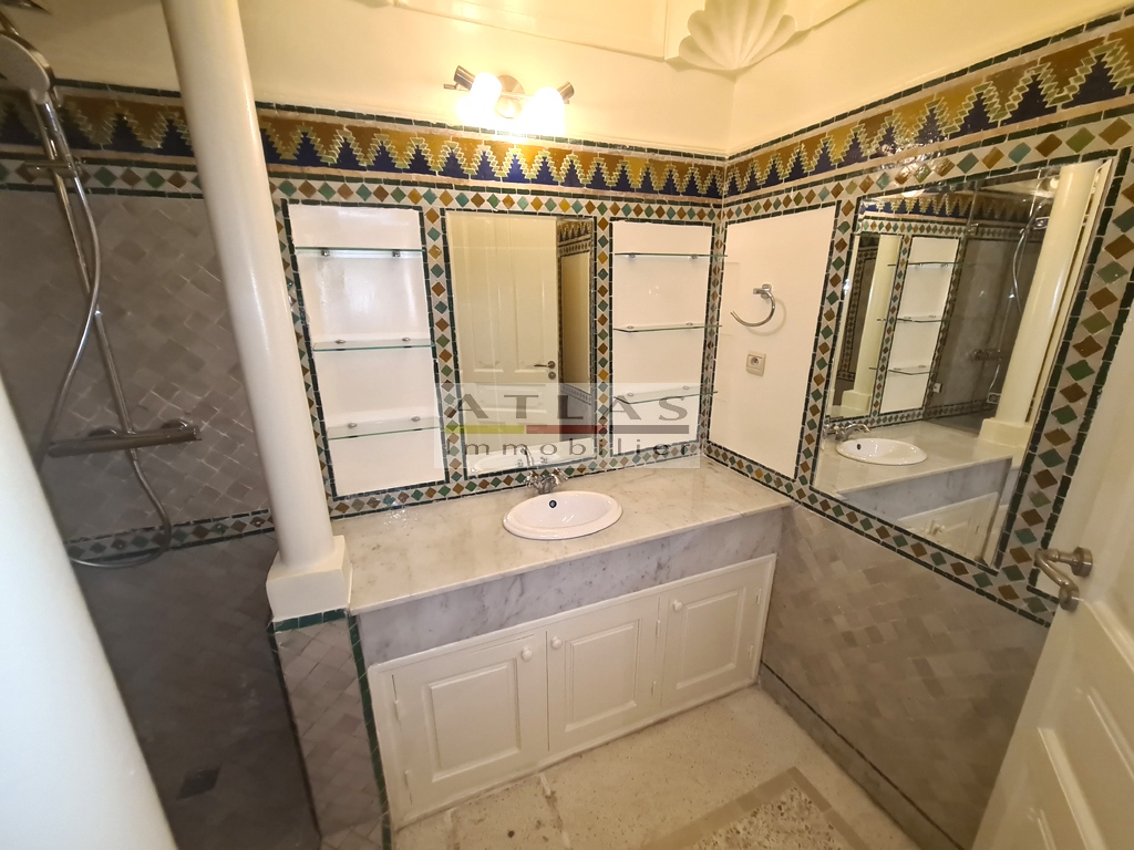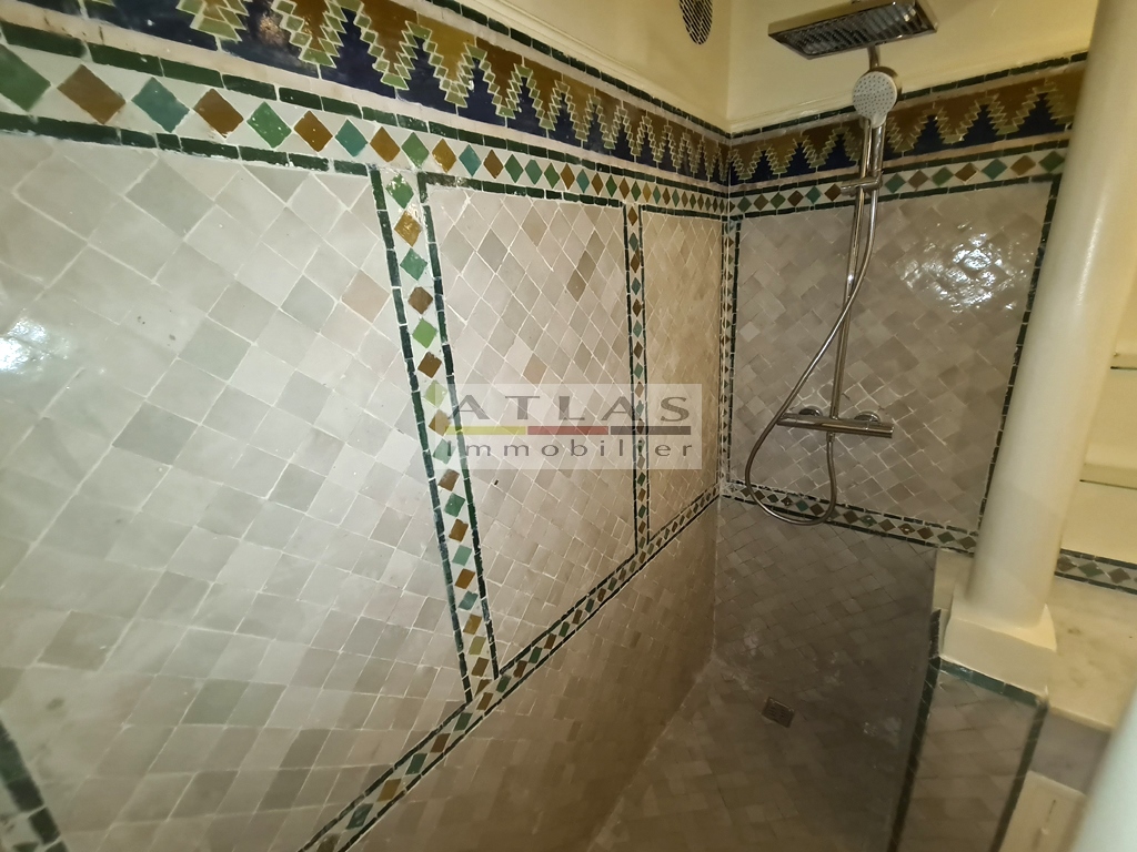 Located in the most sought after area of Marrakech, close to restaurants and all shops, in an old residence with lift, 24/7 surveillance, our Atlasimmobilier agency offers you this charming apartment on the ground floor with an area of 95 m² of living space facing east.