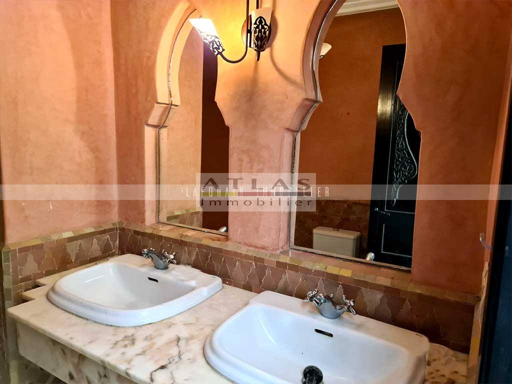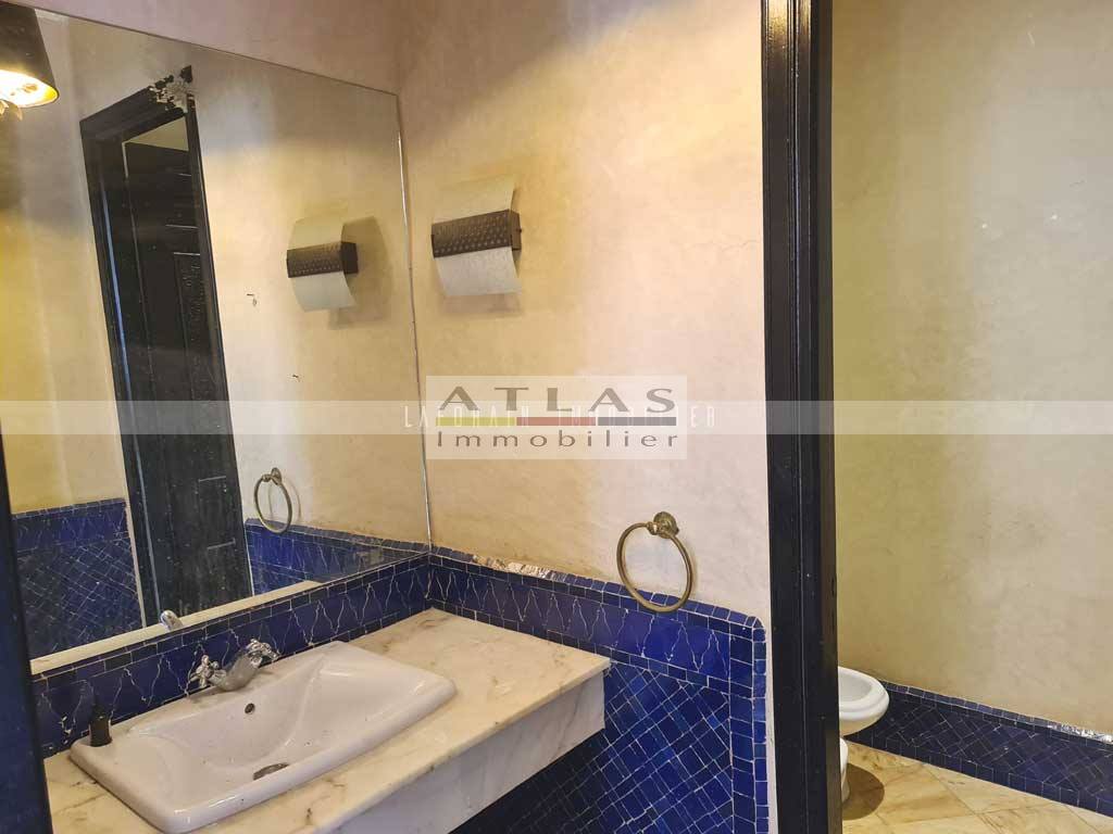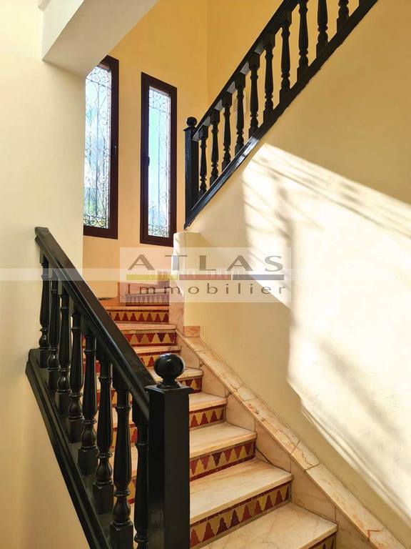 Located in the Targa district, in a secure residence with 24/24 surveillance, this villa is presented to you consists on the ground floor of a very large kitchen with plenty of storage space, a guest toilet, ‘a magnificent sunny living room, a living room with a fireplace and giving access to a splendid terrace. Upstairs, two suites with their balcony as well as their shower rooms including a bathtub, two spacious bedrooms and a shared shower room. The roof terrace also accommodates a bedroom and a water point for the staff.