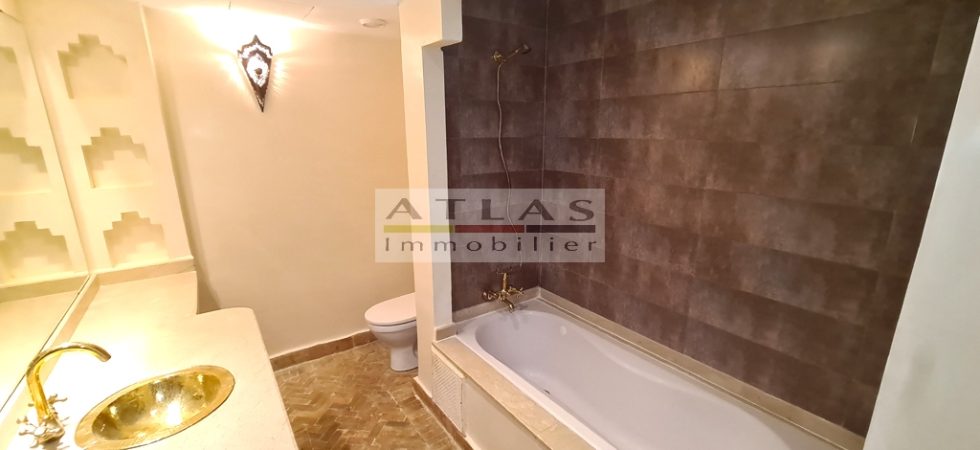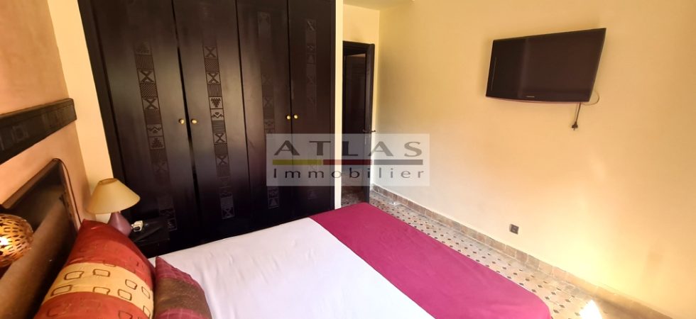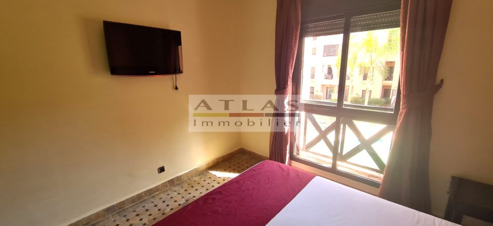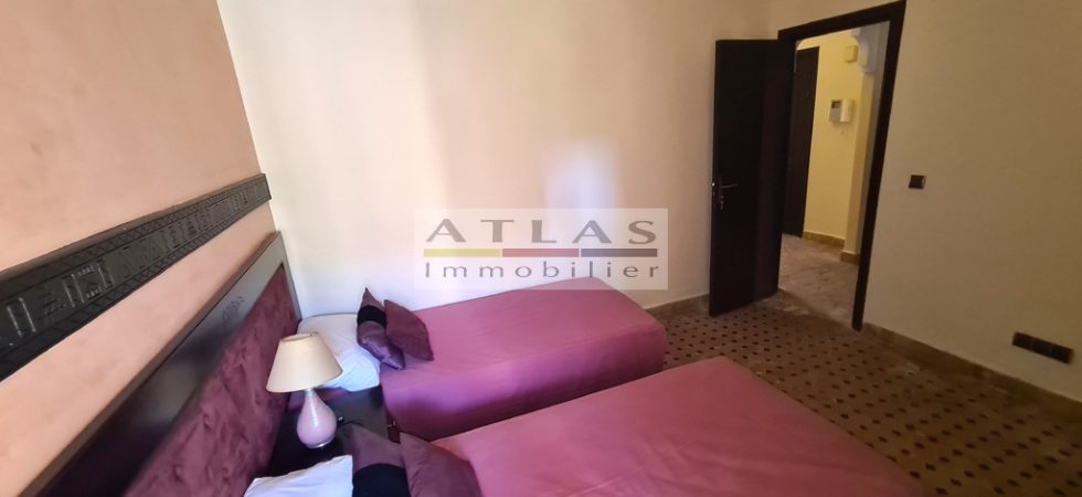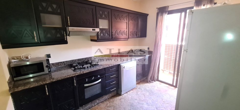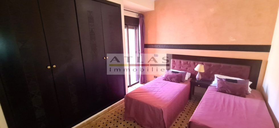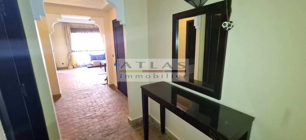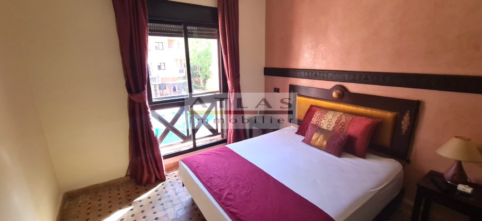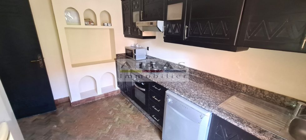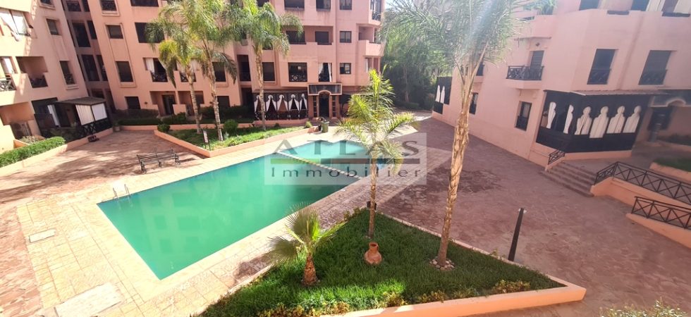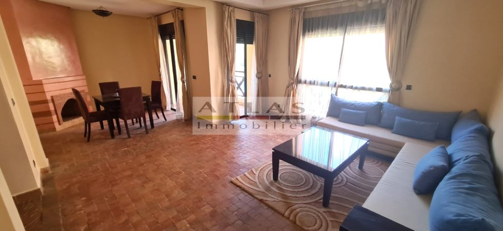 Located on the outskirts of Marrakech, just ten minutes from the hypercentre, this tastefully furnished apartment with an area of 94 m² is on the 1st floor of a secure residence with 24/7 caretaker and elevator.