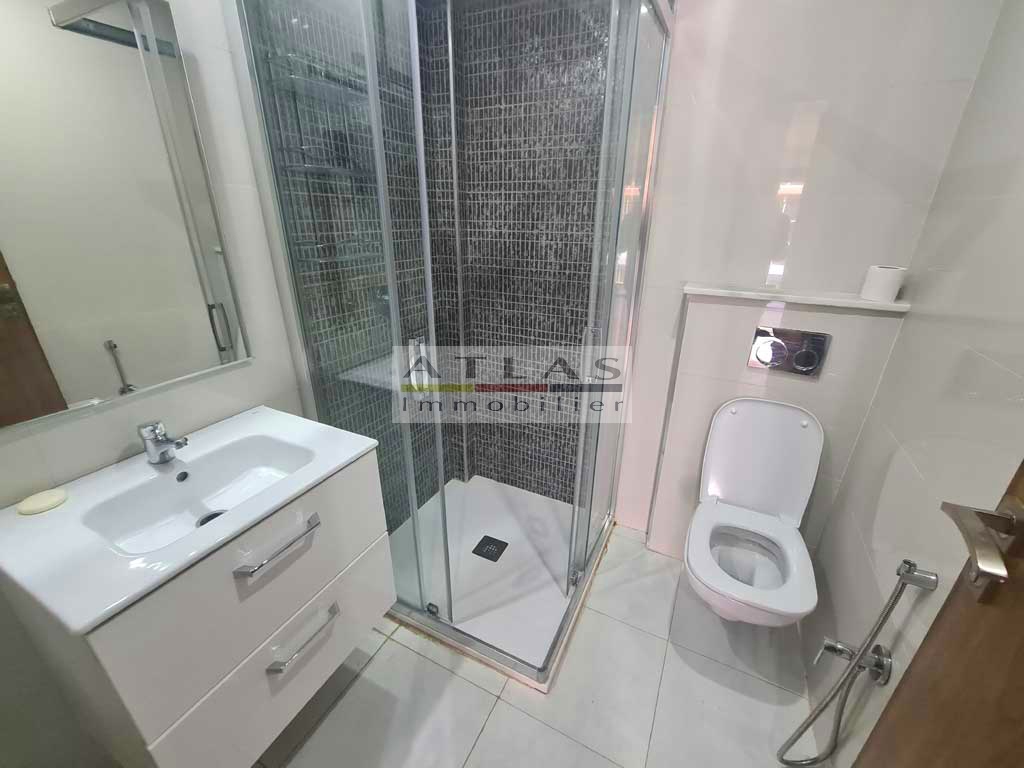 This apartment, which has very nice finishes, includes an American kitchen open to the very bright living room with a small balcony. Composed of a bedroom with terrace, a shower room and a suite with dressing room with its own shower room. Centralized air conditioning for this house also including a parking space.
