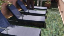 A reception, 2 beautiful bedrooms with bathroom and lounge on the pool