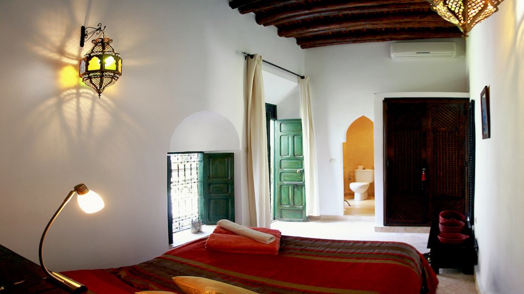 A large air-conditioned suite with oriental decoration, double bed, living room or two single beds, private bathroom in tadellakt (two basins),