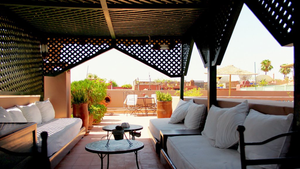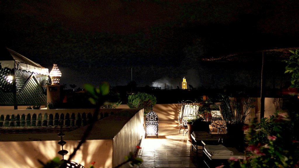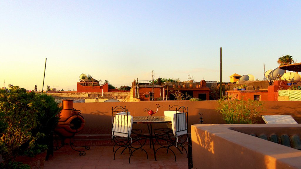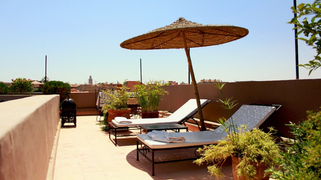 From the terrace, you overlook the treasures of Marrakech, discover the minaret of Koutoubia and guess the snowy mountains of the Atlas.