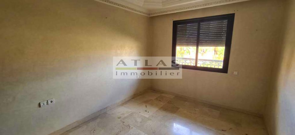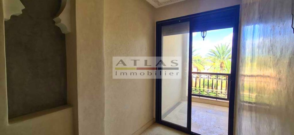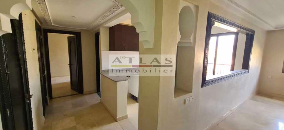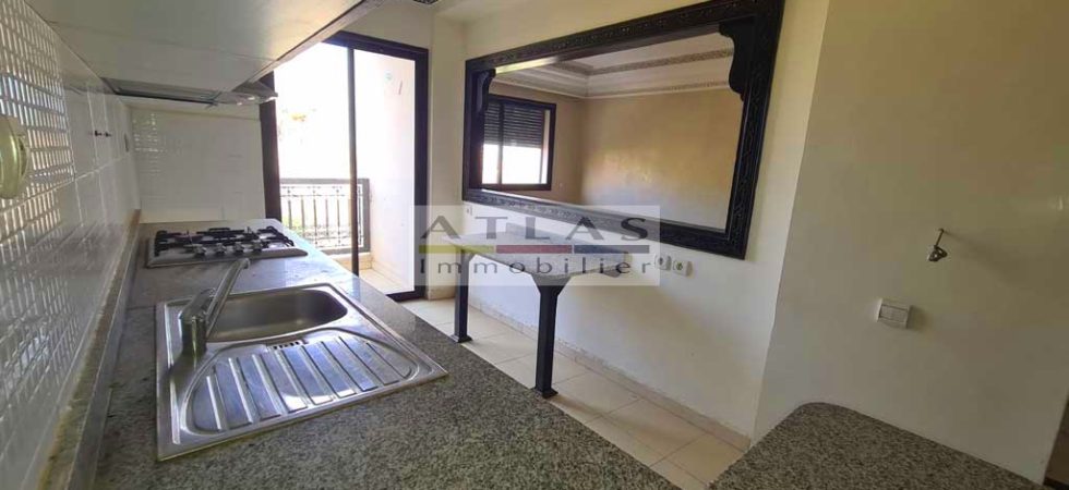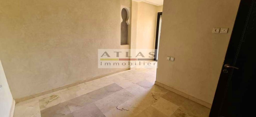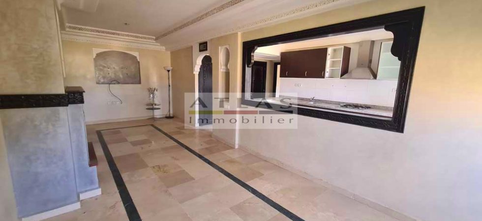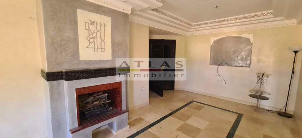 Located just 10 minutes from the center of Marrakech, in this secure 24/24 – 7/7 residence, this apartment on the 1st floor of a residence with swimming pool, with an area of 80 m², is priced at 10,750 dirhams per m². It includes a spacious, very bright living-dining room with fireplace, an open fitted kitchen with a balcony, a shower room, a guest toilet, two bright bedrooms. The apartment is equipped with centralized air conditioning and also has an outdoor parking space.