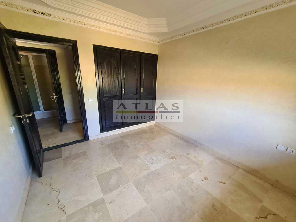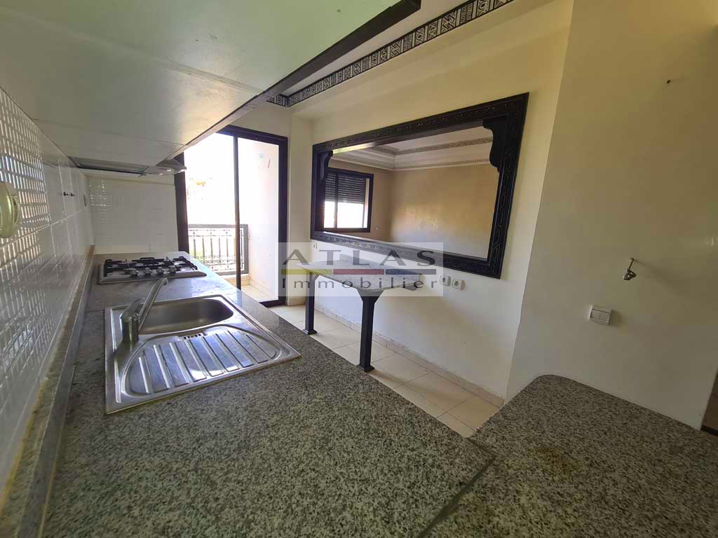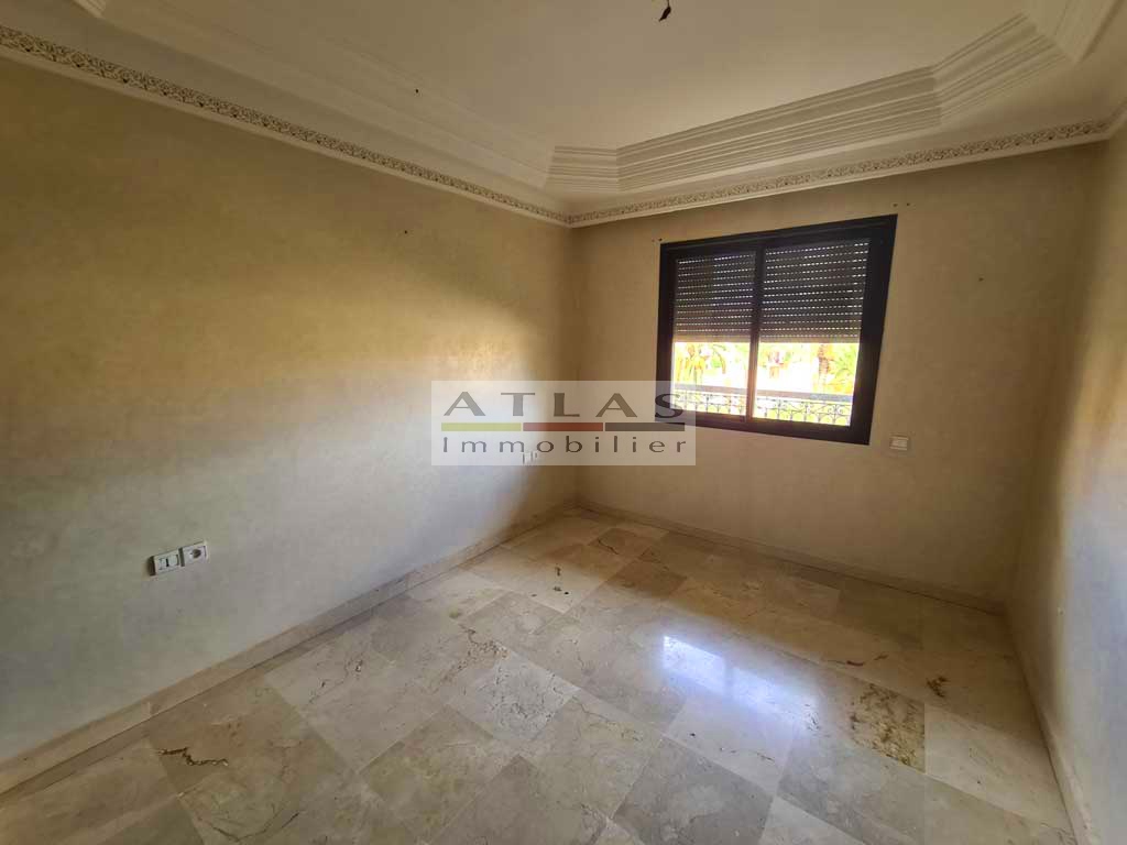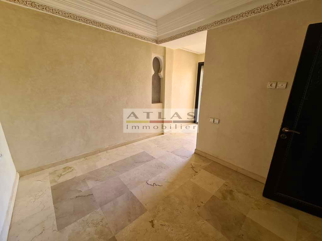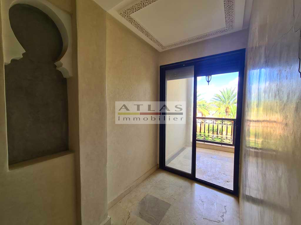 Located just 10 minutes from the center of Marrakech, in this secure 24/24 – 7/7 residence, this apartment on the 1st floor of a residence with swimming pool, with an area of 80 m², is priced at 10,750 dirhams per m². It includes a spacious, very bright living-dining room with fireplace, an open fitted kitchen with a balcony, a shower room, a guest toilet, two bright bedrooms. The apartment is equipped with centralized air conditioning and also has an outdoor parking space.
