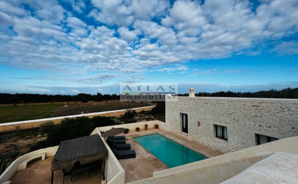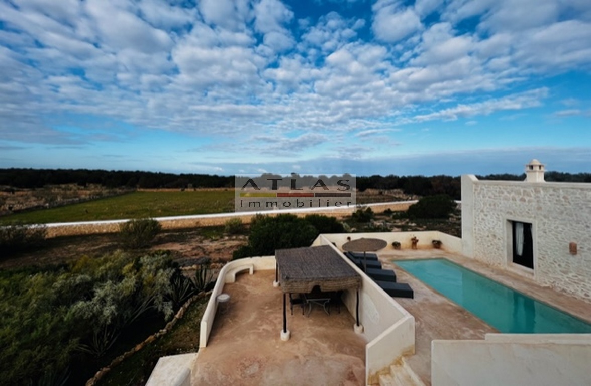 Discover this magnificent property located north of Essaouira, offering breathtaking views of the surrounding countryside and the distant sea. Set on a vast 10,700 m² plot, this home combines comfort and elegance for an exceptional living environment.