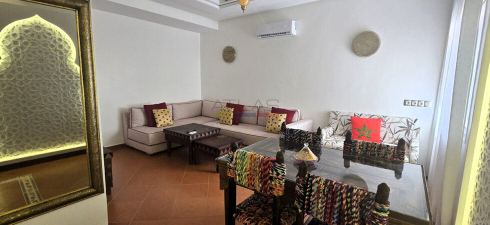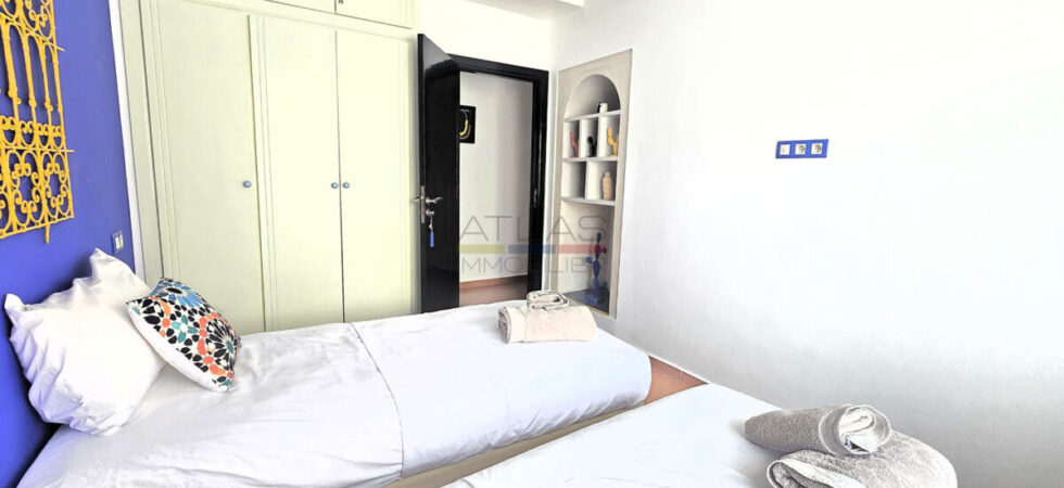 Entre mobilier haut de gamme, résidence sécurisée avec piscine et proximité directe du centre-ville, cet appartement meublé combine confort moderne et emplacement stratégique pour une location longue durée réussie à Marrakech.