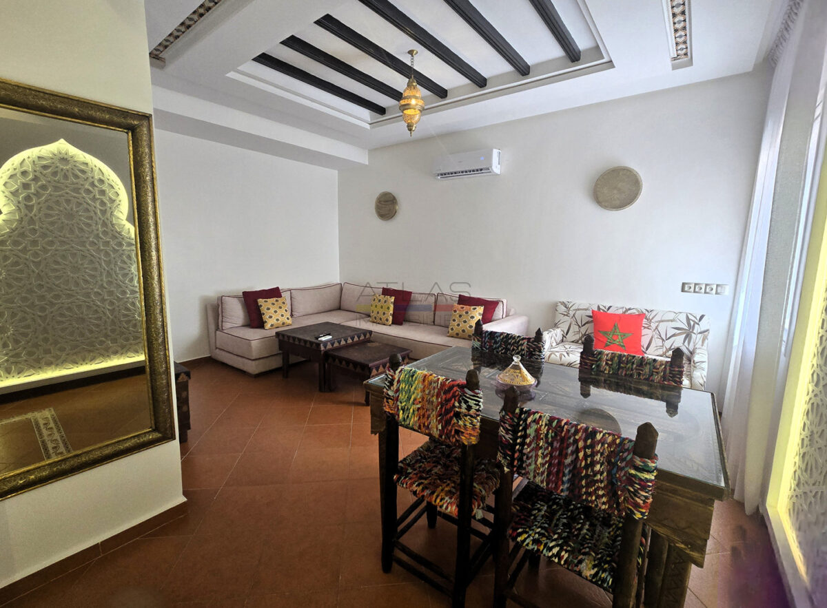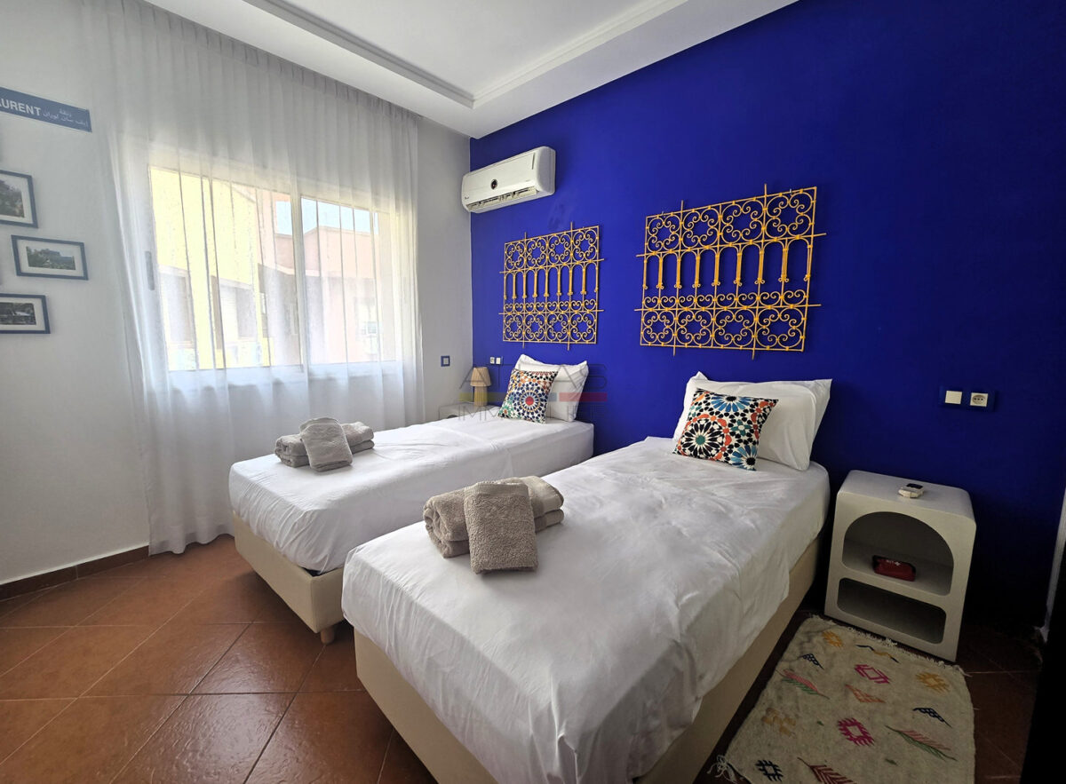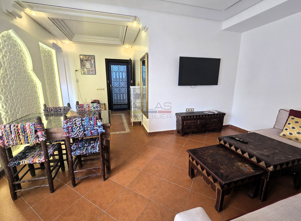 Entre mobilier haut de gamme, résidence sécurisée avec piscine et proximité directe du centre-ville, cet appartement meublé combine confort moderne et emplacement stratégique pour une location longue durée réussie à Marrakech.
