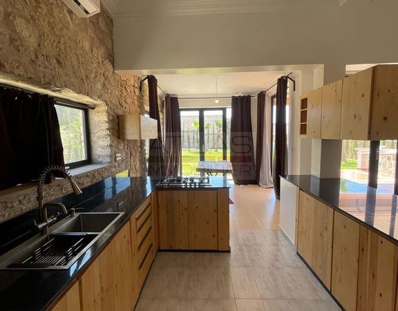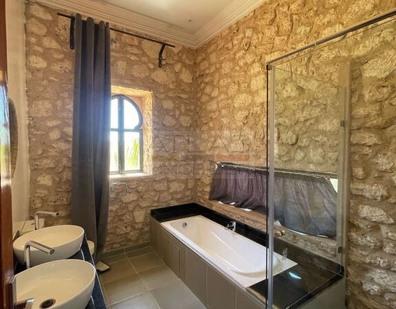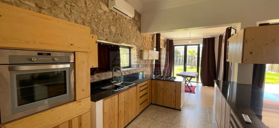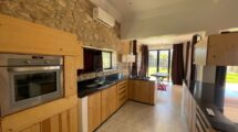 La villa offrait deux chambres confortables, une salle de bain avec baignoire, ainsi qu’une salle d’eau équipée d’une douche. Sa grande pièce de vie, climatisée et baignée de lumière naturelle, s’ouvrait sur une cuisine moderne entièrement équipée — plaques de cuisson au gaz, four encastré, réfrigérateur et arrière-cuisine — ainsi qu’une salle à manger conviviale avec cheminée, idéale pour les moments en famille.