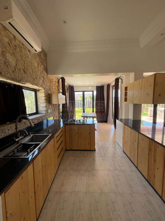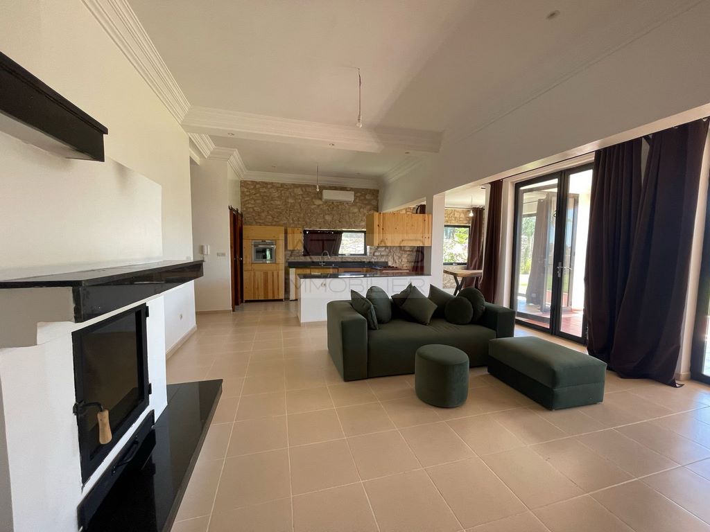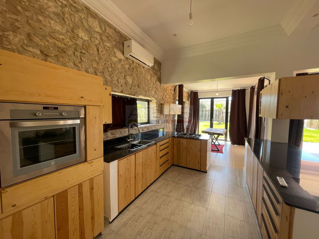 La villa offrait deux chambres confortables, une salle de bain avec baignoire, ainsi qu’une salle d’eau équipée d’une douche. Sa grande pièce de vie, climatisée et baignée de lumière naturelle, s’ouvrait sur une cuisine moderne entièrement équipée — plaques de cuisson au gaz, four encastré, réfrigérateur et arrière-cuisine — ainsi qu’une salle à manger conviviale avec cheminée, idéale pour les moments en famille.