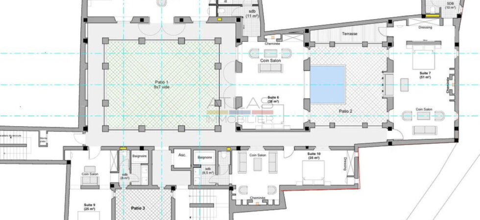 Le projet prévoit 10 suites, dont la plus vaste développe 72 m², chacune avec salle de bain, toilettes, cheminée et dressing.