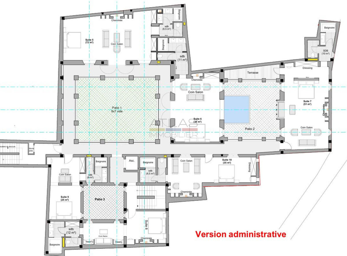 Le projet prévoit 10 suites, dont la plus vaste développe 72 m², chacune avec salle de bain, toilettes, cheminée et dressing.