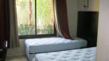 Appartement à la vente dans la fameuse palmeraie de Marrakech dans résidence fermée et sécurisée. Appartement bien agencé, meublé avec deux chambres à coucher avec deux salles de bains, une cuisine américaine, un salon, une terrasse avec une vue sur son jardin et sa piscine. Une salle de fitness, des terrains de sports, une salle de jeux, et une piscine collective sont à votre disposition. Possibilité de gestion locative.