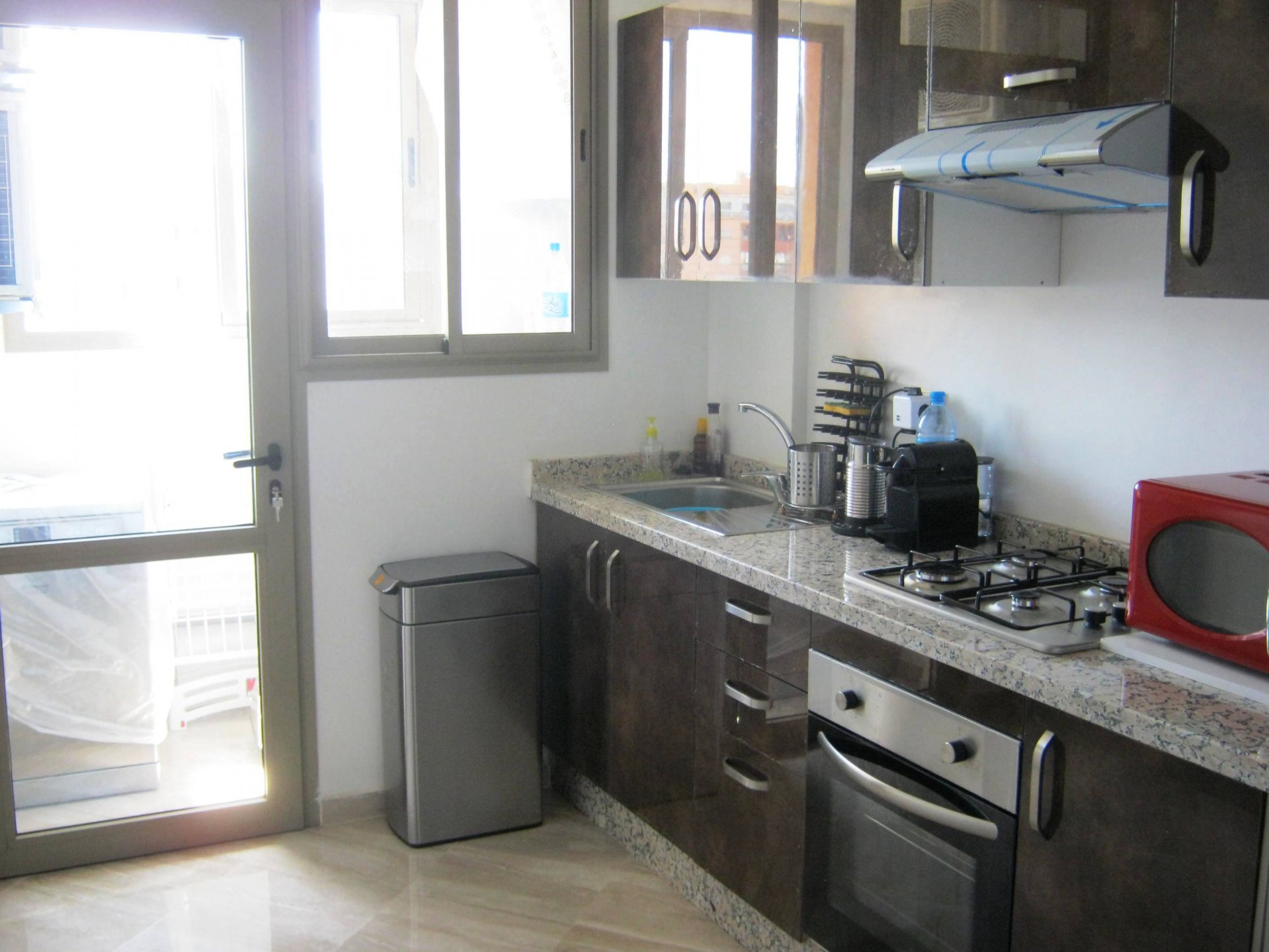 Il est composé de deux chambres,deux salles de bain,un salon,une cuisine équipée.