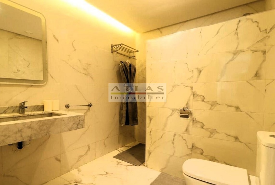 Situé à quelques pas de la Palmeraie, cet élégant appartement offre un cadre de vie exceptionnel au sein d’une résidence sécurisée. Conçu avec des matériaux de qualité, il séduit par ses prestations haut de gamme et son environnement paisible.