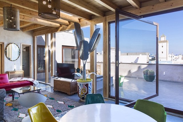 Ce superbe appartement titré, situé au dernier étage d’un immeuble entièrement restauré en plein cœur de la Médina d’Essaouira, a récemment été vendu. Il offrait un espace de vie luxueux avec des prestations haut de gamme et une vue imprenable sur la mer.