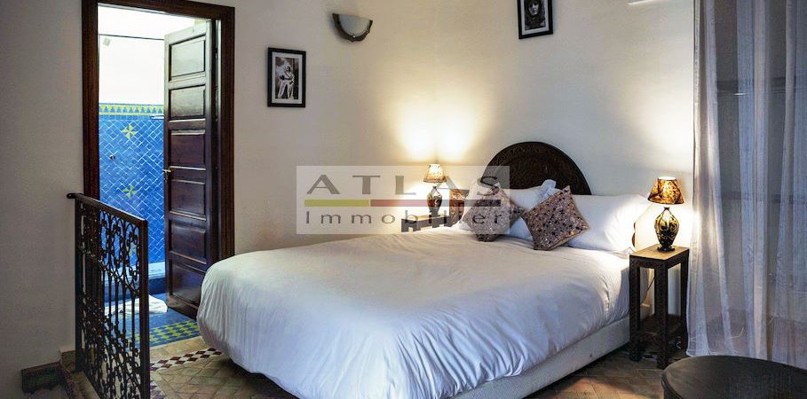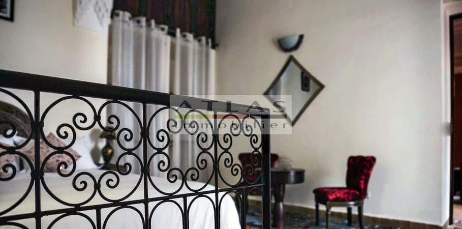 Vaste, doté d’un large patio lumineux et d’une double terrasse, il est classé maison d’hôtes et dispose de deux suites, trois chambres et d’une Douiria (appartement) attenante.   Un havre de paix ouvert sur un patio arboré où est installé un bassin pour se rafraîchir aux heures chaudes, ainsi qu’un hammam.