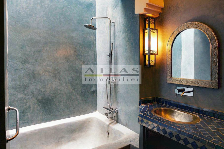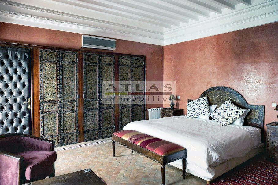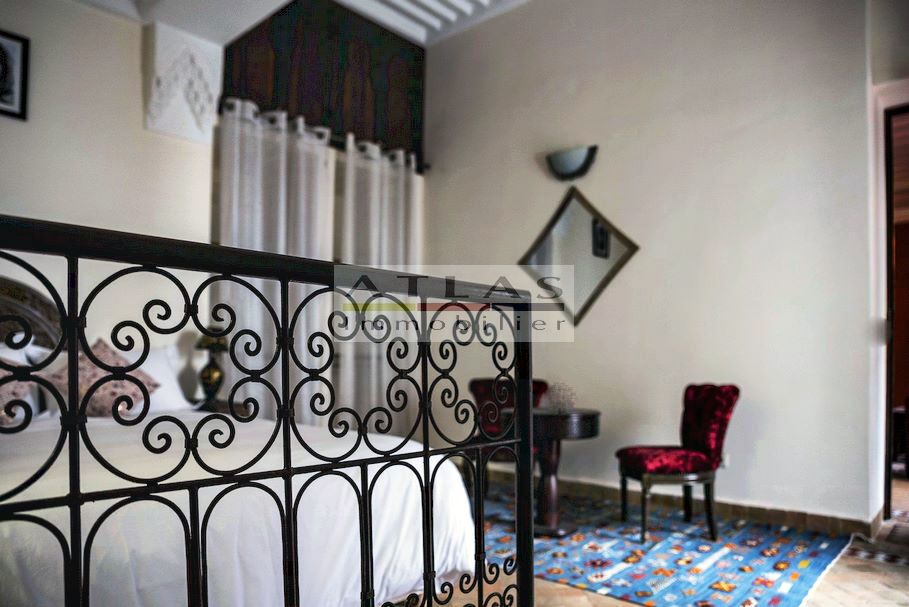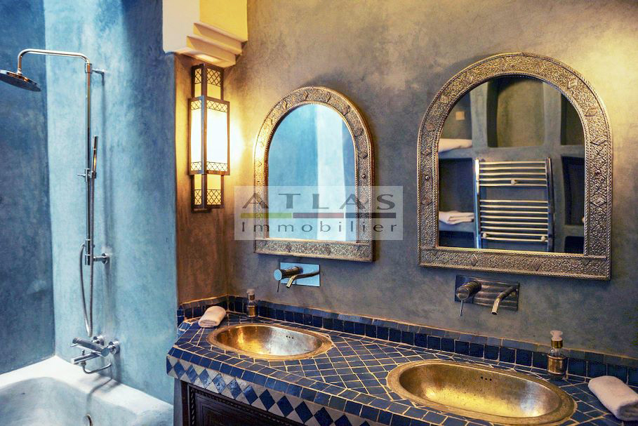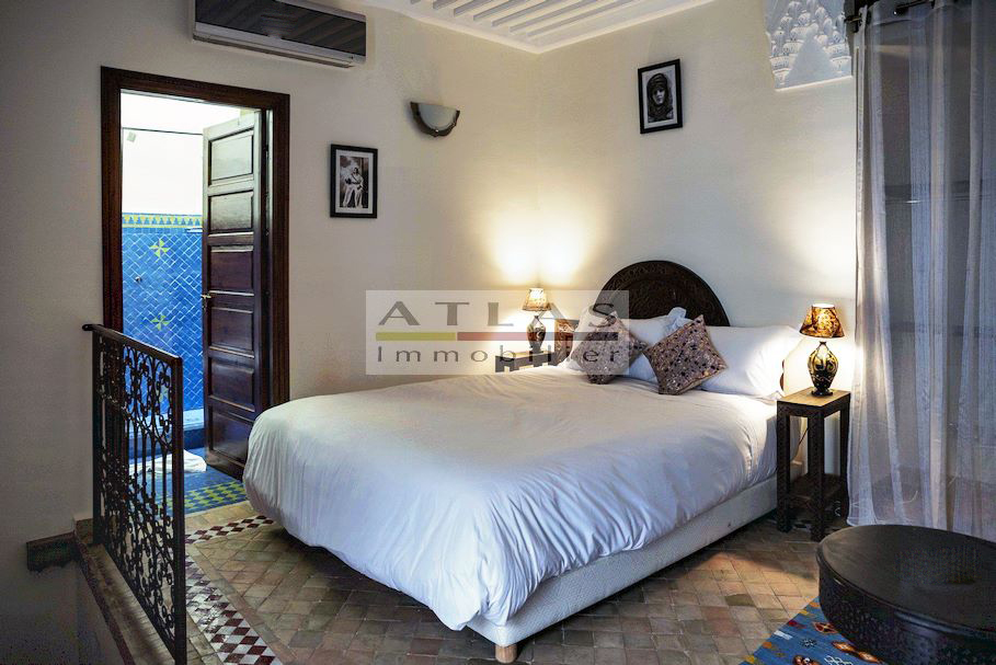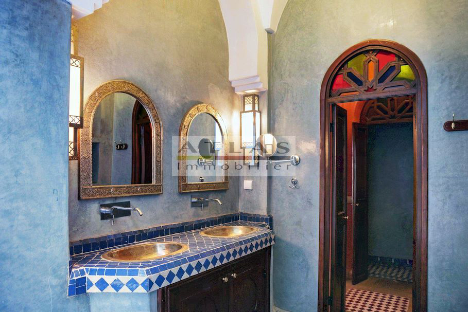 Vaste, doté d’un large patio lumineux et d’une double terrasse, il est classé maison d’hôtes et dispose de deux suites, trois chambres et d’une Douiria (appartement) attenante.   Un havre de paix ouvert sur un patio arboré où est installé un bassin pour se rafraîchir aux heures chaudes, ainsi qu’un hammam.